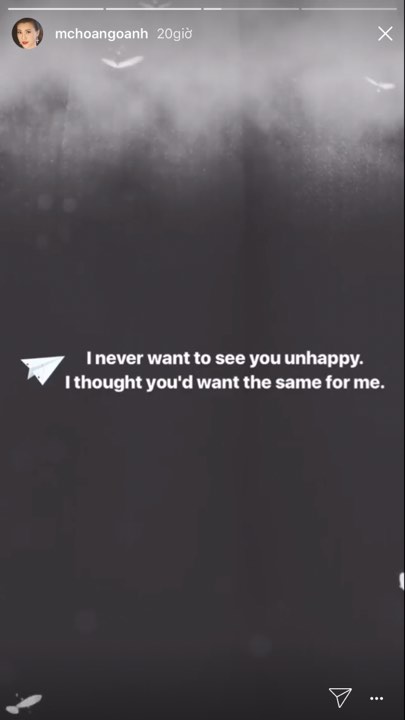 Không chỉ Hạ Vi, Hoàng Oanh cũng phản ứng về tin đồn Huỳnh Anh có “người mới”. Cô đăng tải nhiều bức ảnh “tâm trạng” liên quan đến tình yêu. Thậm chí, người đẹp còn viết caption khá “ẩn ý” sau khi loạt ảnh Huỳnh Anh - Hạ Vi thân mật bị lộ: “Già rồi, tự nhiên bình thản hơn với mọi thứ”.