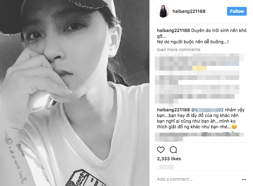 Thông qua Instagram cá nhân của mình, Hải Băng có chia sẻ bức ảnh mới nhất cùng dòng trạng thái khá suy tư về duyên - nợ: “Duyên do trời sinh nên khó gỡ. Nợ do người buộc nên dễ buông…”.