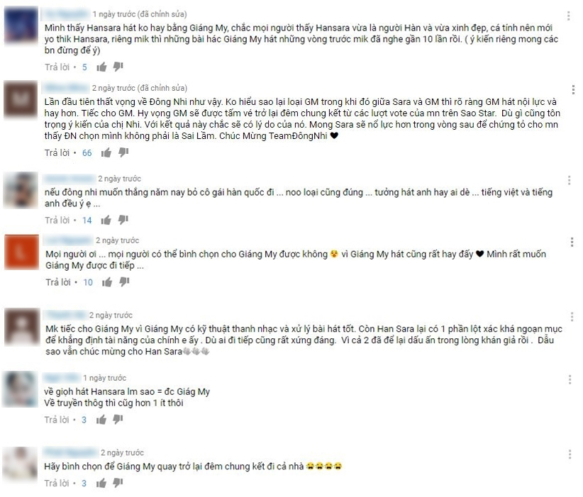 Sự tiến bộ, cố gắng từng ngày là lý do để Đông Nhi chọn Sara đi tiếp, tuy nhiên, so với Giáng My, thí sinh được đánh giá cao ở giọng hát nội lực, cảm xúc và tự tin trên sân khấu thì Han Sara vẫn không sánh bằng. Đằng này, đây lại là cuộc thi về giọng hát, vì thế Giáng My có đầy đủ kỹ thuật cơ bản cũng như tố chất của một ca sĩ chuyên nghiệp hơn. Cho nên, quyết định của Đông Nhi đã dấy lên nhiều ý kiến trái chiều, thậm chí có ý kiến còn cho rằng, Han Sara đi được tới vòng này là quá xa rồi.