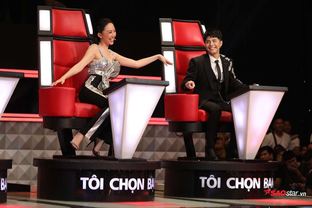 Để “rắc thính” với Mỹ Hằng, HLV Noo Phước Thịnh không ngại dùng đến chiêu dọa dẫm: “Tập bài với anh, nếu sai là anh đánh đó“. Cuối cùng, vị HLV điển trai không giấu được sự ngỡ ngàng khi cô nàng 4 chọn thẳng thắn đưa ra quyết định: “Ban đầu em rất thích anh Noo nhưng em tin vào cảm giác người bấm chọn em đầu tiên” và đầu quân về team Thu Phương.