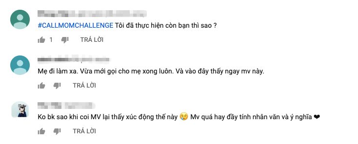 Lớn rồi còn khóc nhè và #callmomchallenge đã được rất nhiều người hưởng ứng và đã để lại những chia sẻ hết sức chân tình về câu chuyện của bản thân mỗi người! Đặc biệt, đối với các trẻ đang sinh sống, học tập và làm việc ở những nơi xa, nơi mà hình bóng của mẹ chỉ còn đọng lại trong kí ức mập mờ và để mỗi lần nhớ mẹ, chúng ta chỉ có thể nghe giọng nói ấm áp qua chiếc điện thoại vô tri. Có những lúc bận rộn, chúng ta đã đôi lần dập máy hay dửng dưng với cuộc gọi từ người mẹ, mặc kệ có biết không mẹ đang sốt ruột về đứa con ở quê nhà. Và #callmomchallenge xuất hiện, như một cơ hội để những người trẻ có thể một lần được nói hết tình cảm của mình dành cho người mẹ kính yêu!
