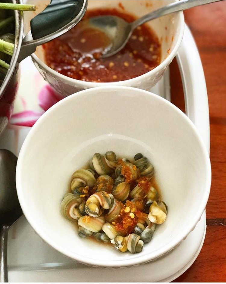 ốc hấp xả - món ăn dân giả mà Diễm Hương thực hiện.