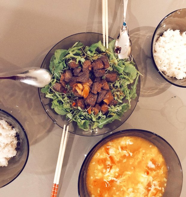 Mỗi bữa ăn luôn được Lan Khuê chăm chút kỹ lưỡng.