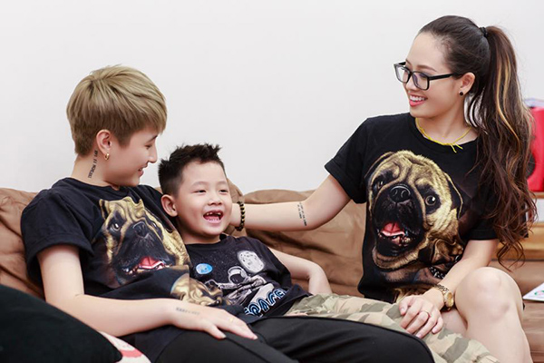 Linh Jay cũng hết lòng yêu thương con riêng của Ngọc Trang.