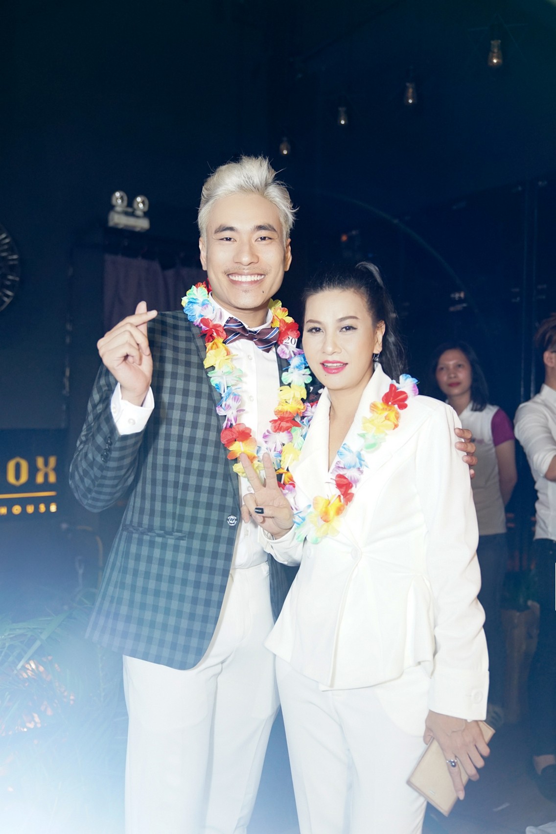 Vest ngoài lịch lãm phối cùng bộ đồ tây màu trắng tôn lên khí chất đàn ông hấp dẫn của Kiều Minh Tuấn.