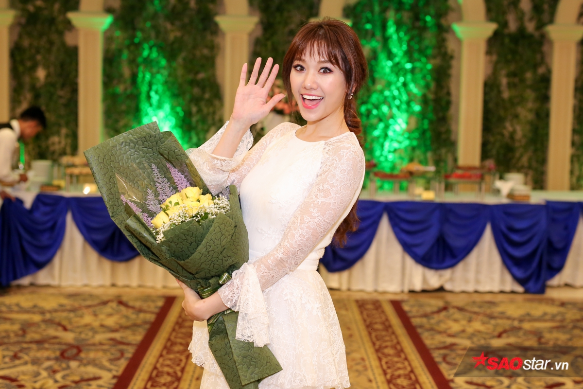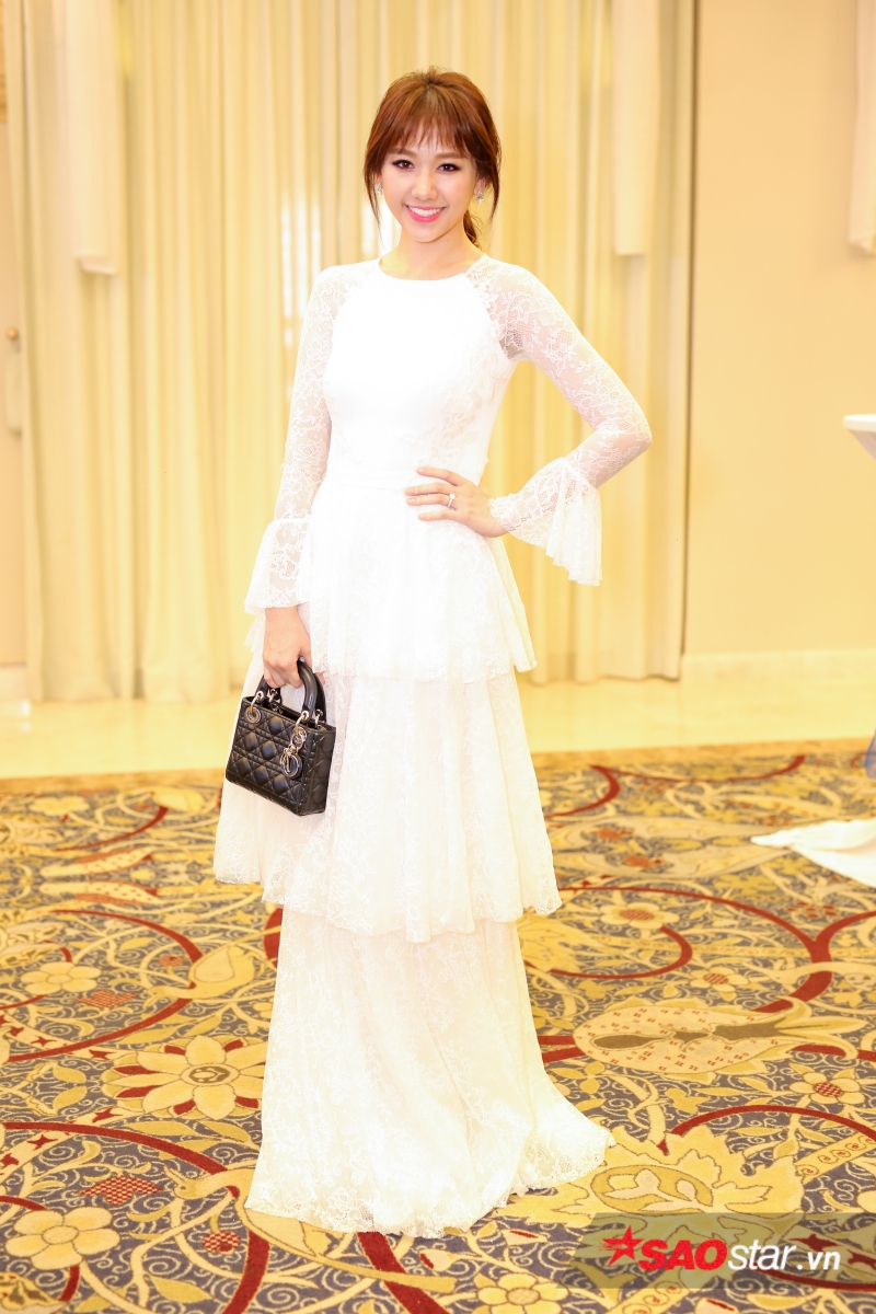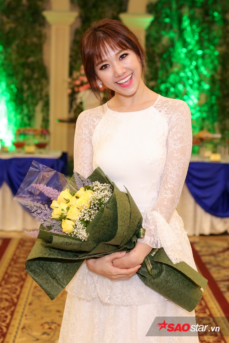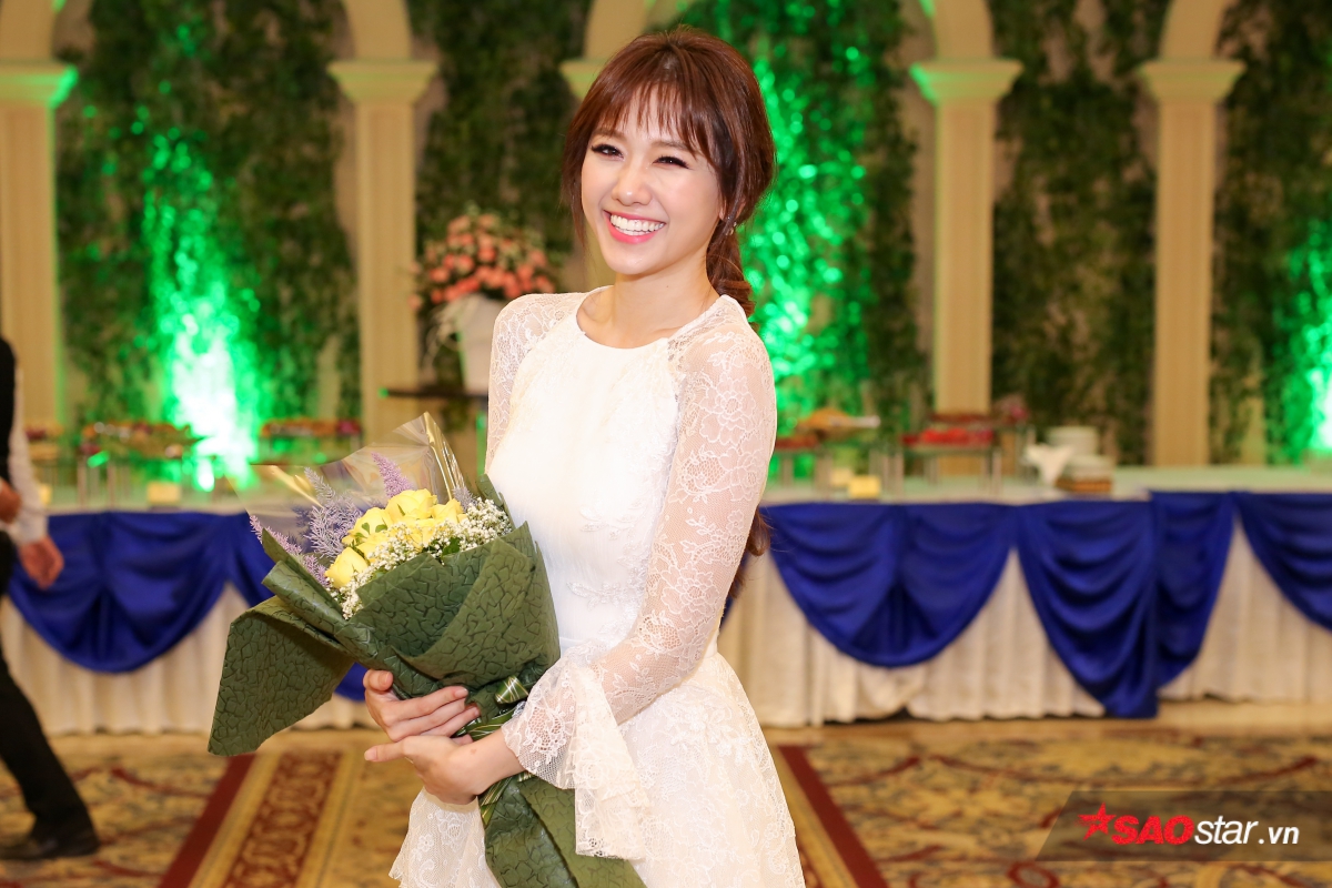 Hari Won khiến các khách mời ngỡ ngàng trước thân hình thon gọn. Sau khi giảm 9 kg trong vòng 4 tháng, giọng ca Anh cứ đi đi là một trong nghệ sĩ đắt show sự kiện và quảng cáo nhất trong thời gian qua.