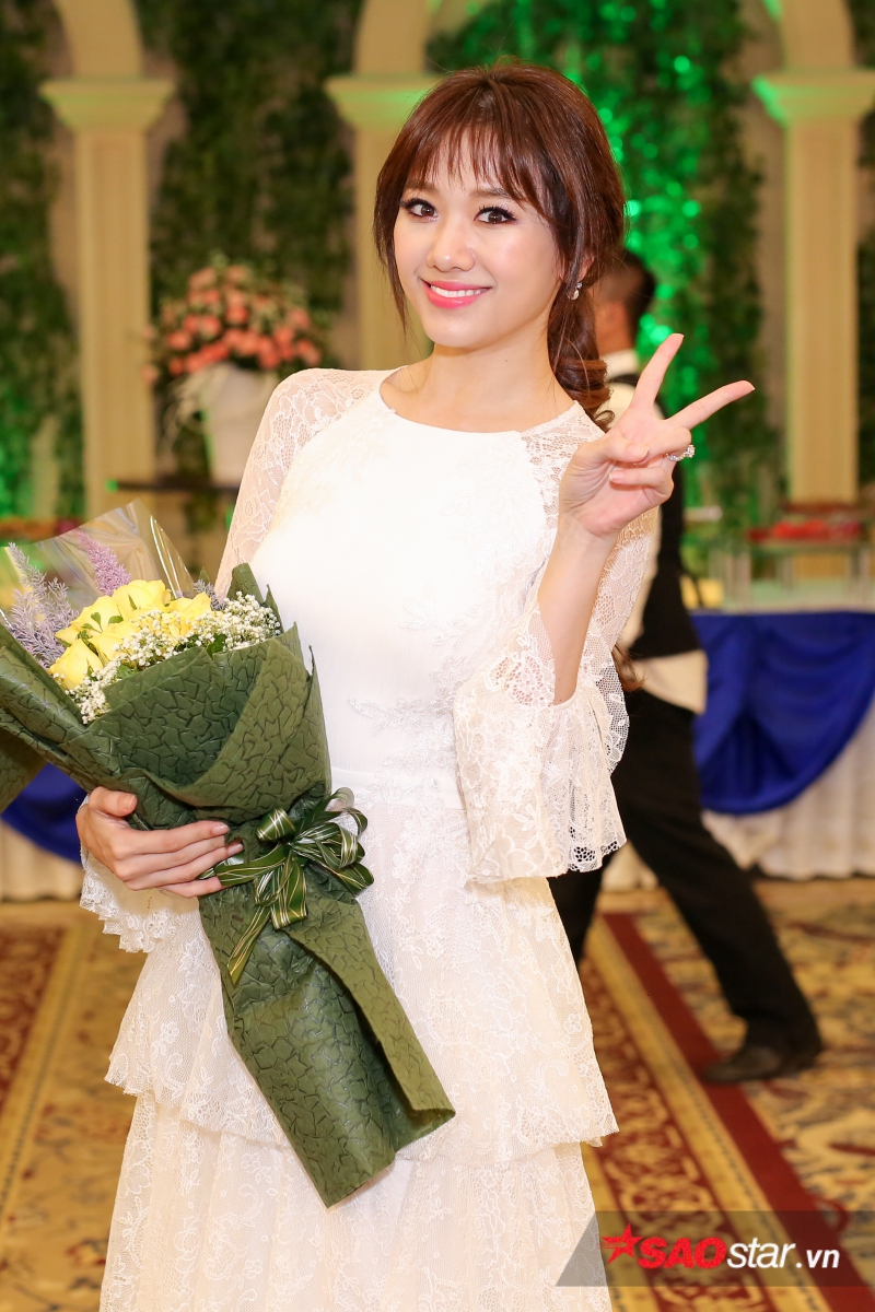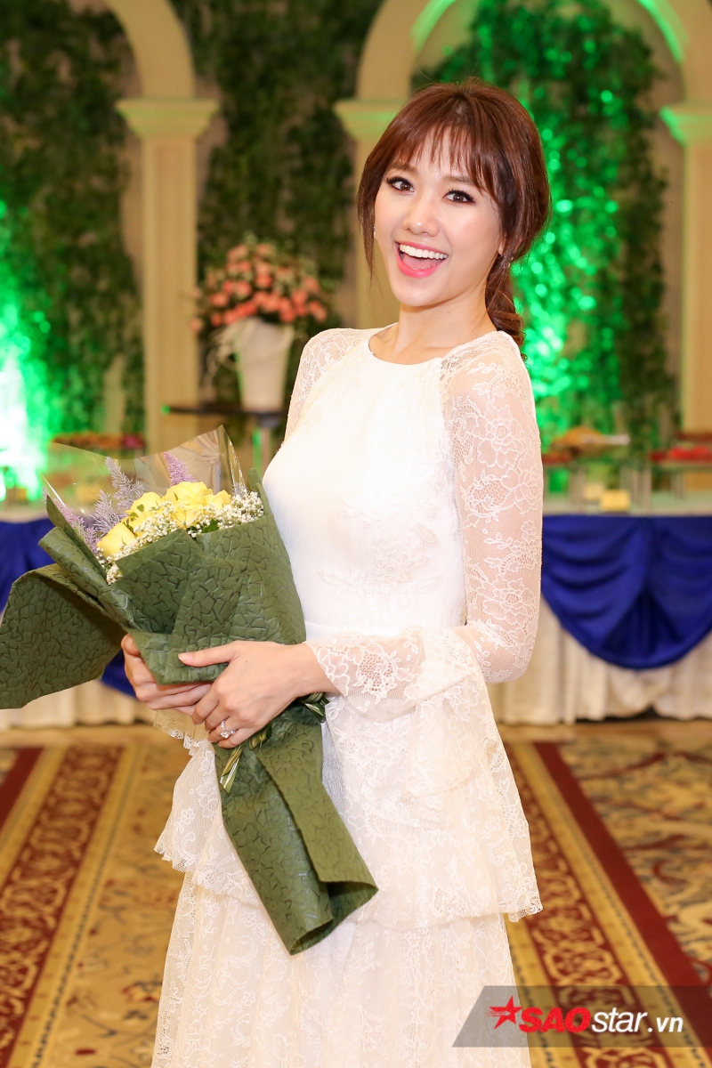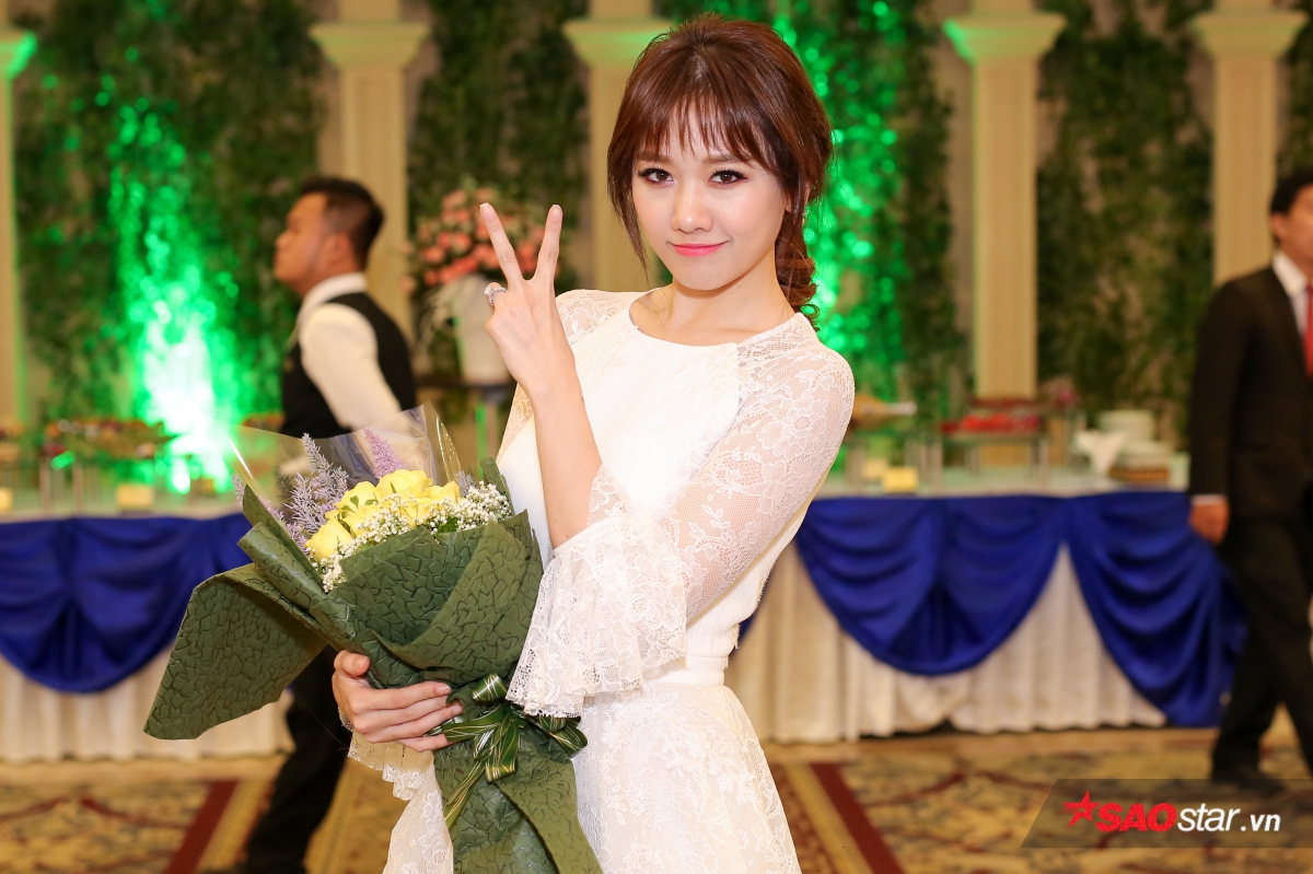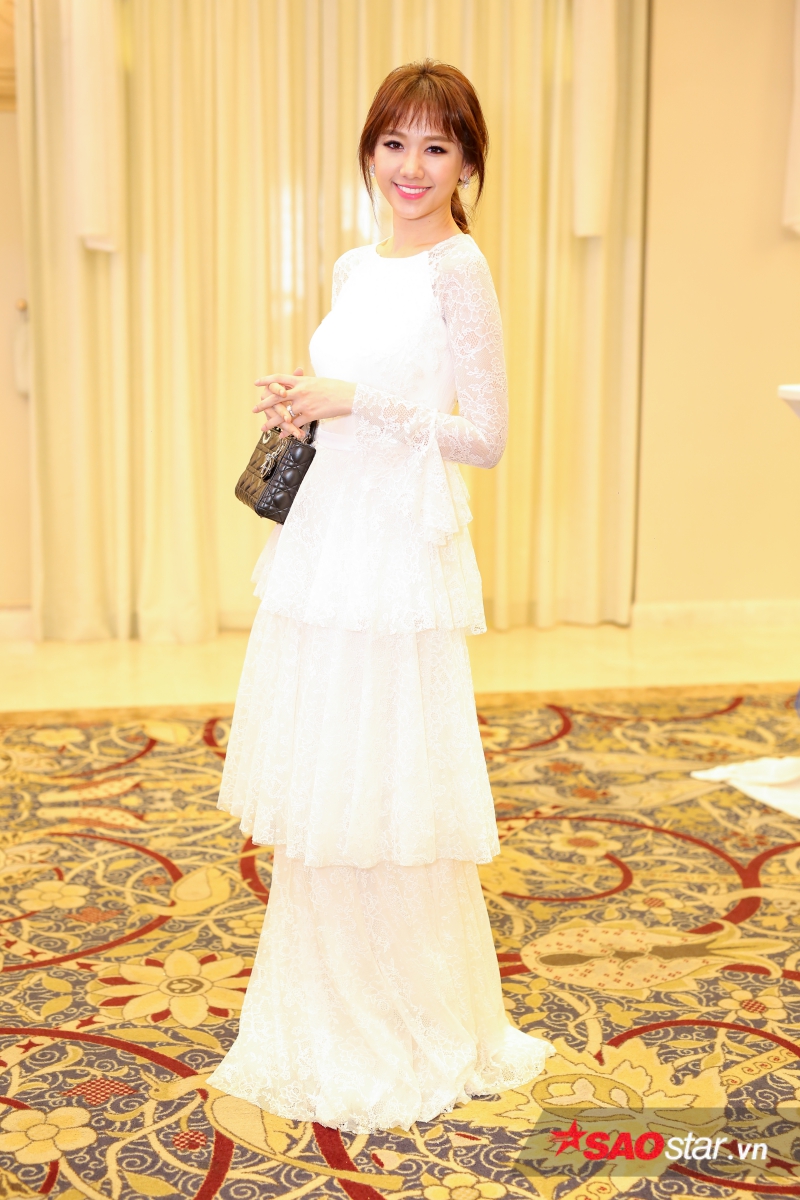 Hari Won khiến các khách mời ngỡ ngàng trước thân hình thon gọn. Sau khi giảm 9 kg trong vòng 4 tháng, giọng ca Anh cứ đi đi là một trong nghệ sĩ đắt show sự kiện và quảng cáo nhất trong thời gian qua.