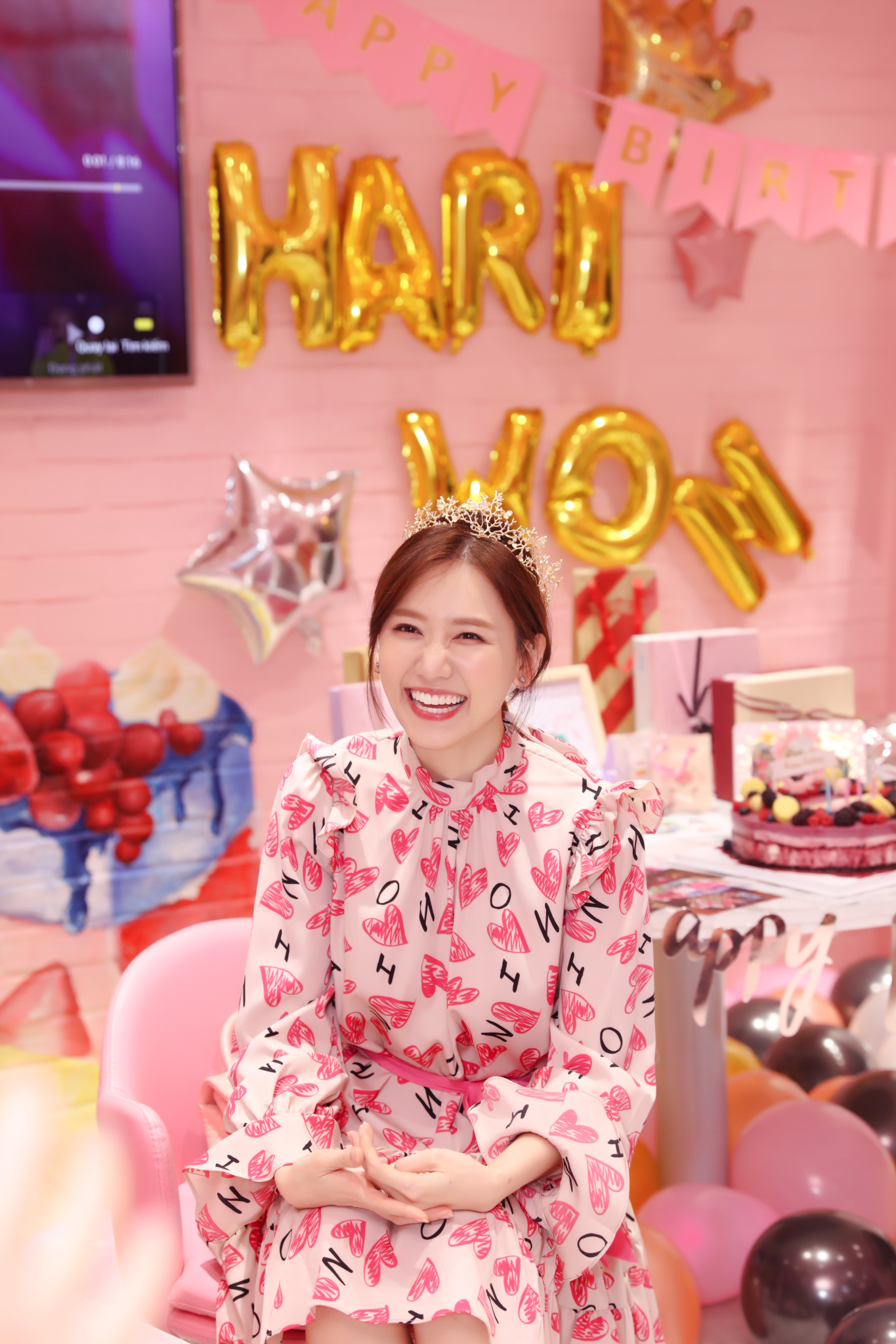 Trong sự kiện, Hari Won bày tỏ sự xúc động trước món quà bất ngờ dành cho mình. Bên cạnh hoa và bánh, nữ ca sĩ còn được mọi người cùng nhau hát mừng trong ngày đặc biệt. “Dù không phải lần đầu đón nhận những điều bất ngờ thế này nhưng thực sự cảm xúc trong tôi lại dâng trào. Tôi cảm ơn tất cả vì cho tôi một kỷ niệm không bao giờ quên được”, cô chia sẻ.
