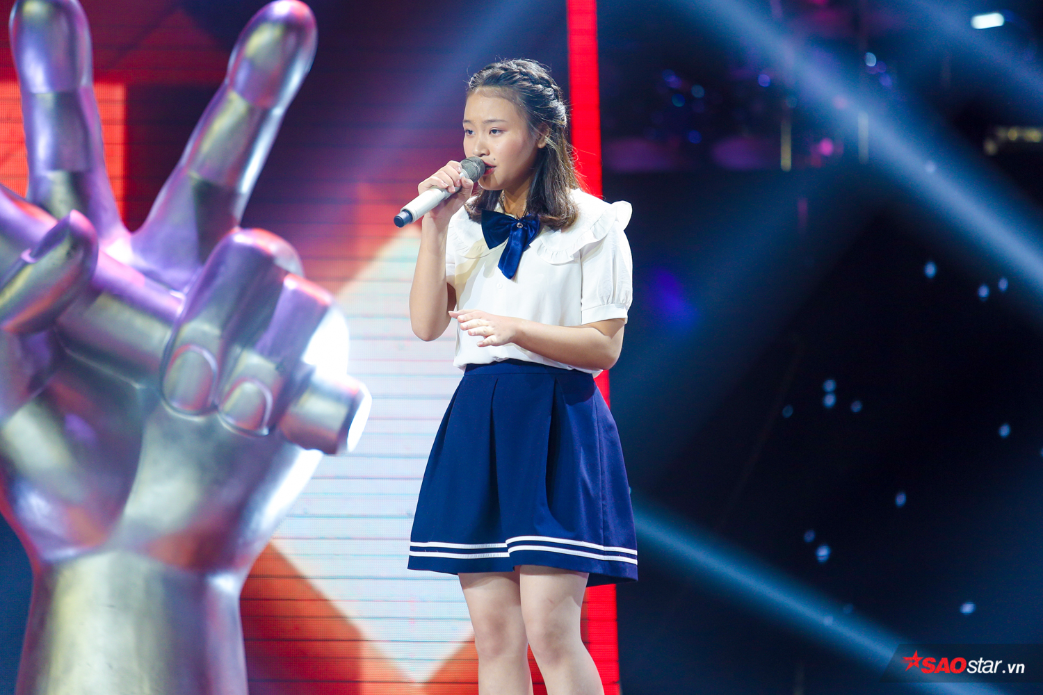 Chọn lựa một ca khúc nhạc ngoại - lời Việt được chắp bút bởi Đinh Mạnh Ninh, cô bé 14 tuổi đã khiến các huấn luyện viên thổn thức vì giọng ca ngọt ngào, trong trẻo và ẩn chứa nhiều cảm xúc.
