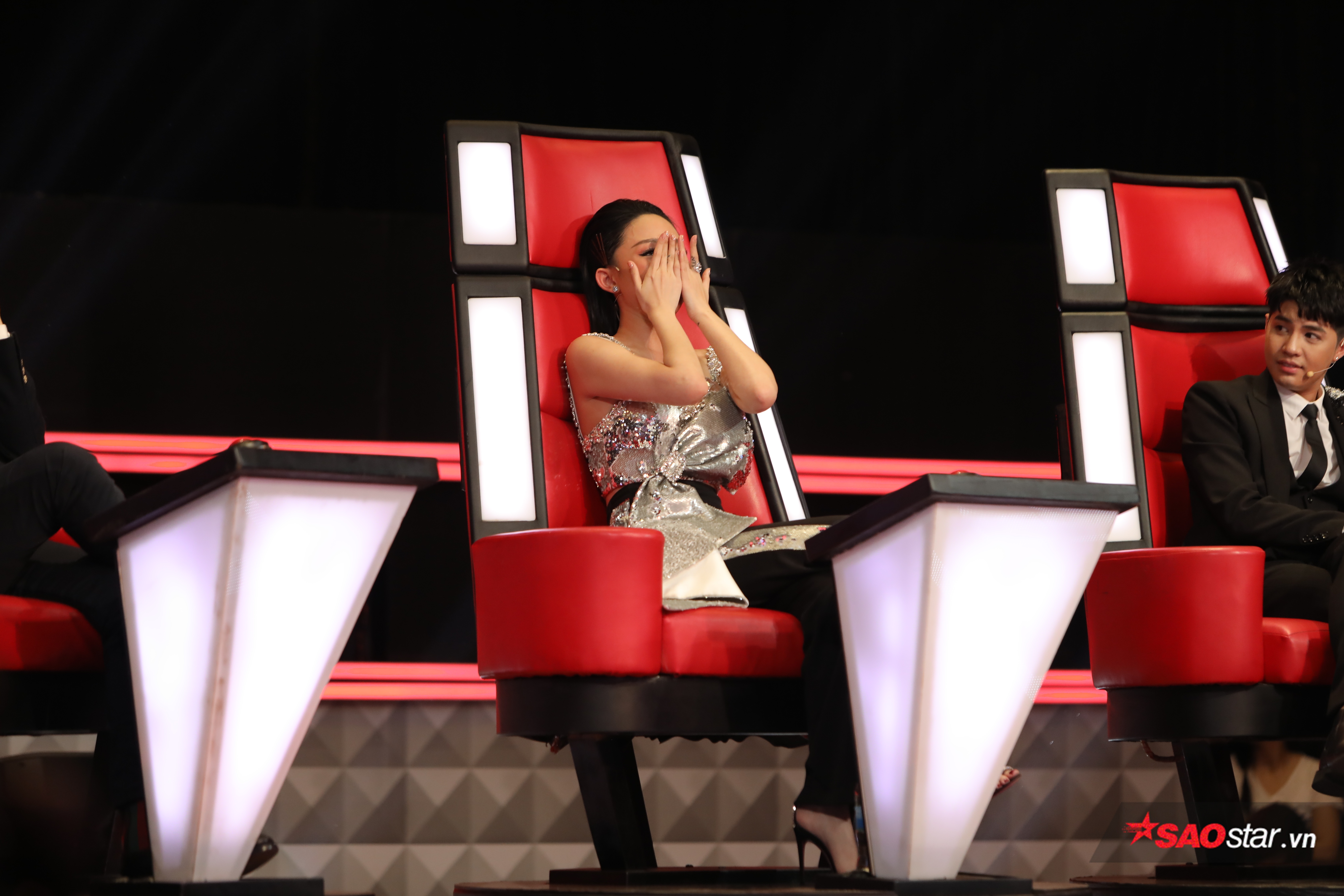 Cả ba HLV còn lại đều mỉm cười cảm thông khi Tóc Tiên dù cố hết sức vẫn không kìm được nước mắt. Đây cũng là lần đầu tiên, vị HLV luôn khiến các fan trầm trồ vì sự mạnh mẽ, nữ quyền lại rơi nước mắt khi chia sẻ: “Câu hát đó thể hiện rõ sự cô đơn của người phụ nữ. Chị thấy hay quá chị bấm”, “Cảm xúc của chị, em thấy rồi. Em chọn ai là quyền của em“.