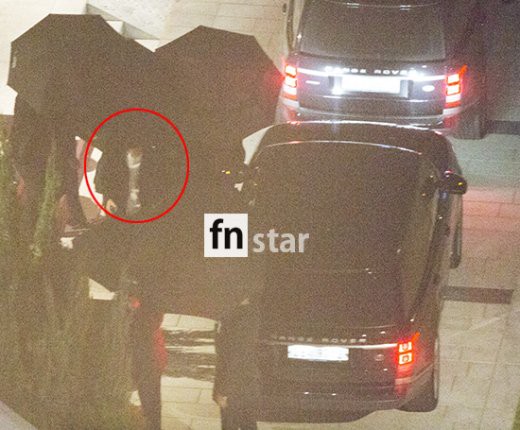Dàn vệ sĩ che ô đen kín mít để đảm bảo sự riêng tư.