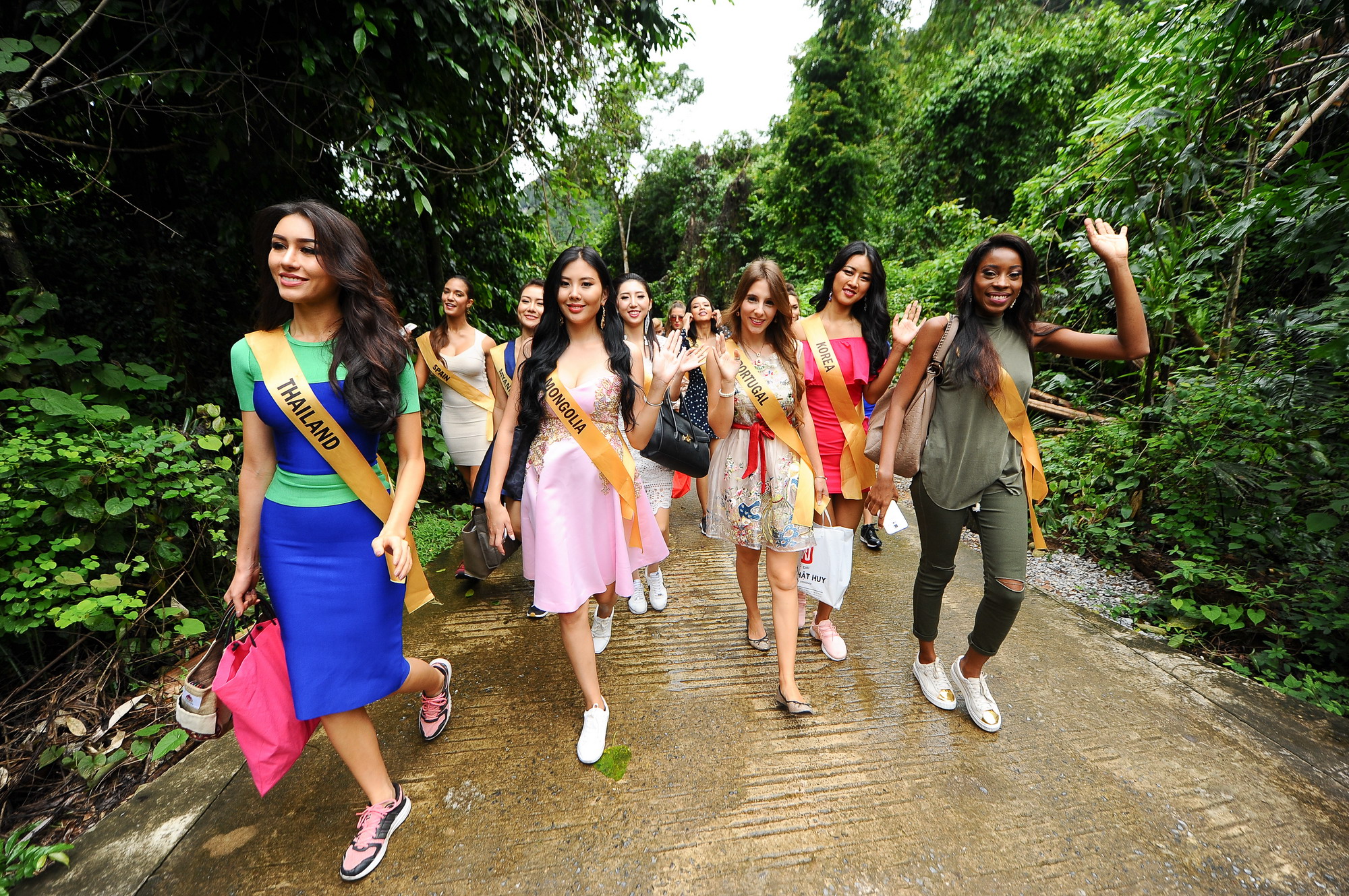 Để đến động Thiên Đường, các người đẹp phải vượt qua 524 bậc thang. Không hề lo lắng hay tỏ ra mệt mỏi, các người đẹp của “Miss Grand International 2017” lại cảm thấy vô cùng hào hứng và phấn khởi trước những điều thú vị bên trong hang động được cho là lớn nhất châu Á.