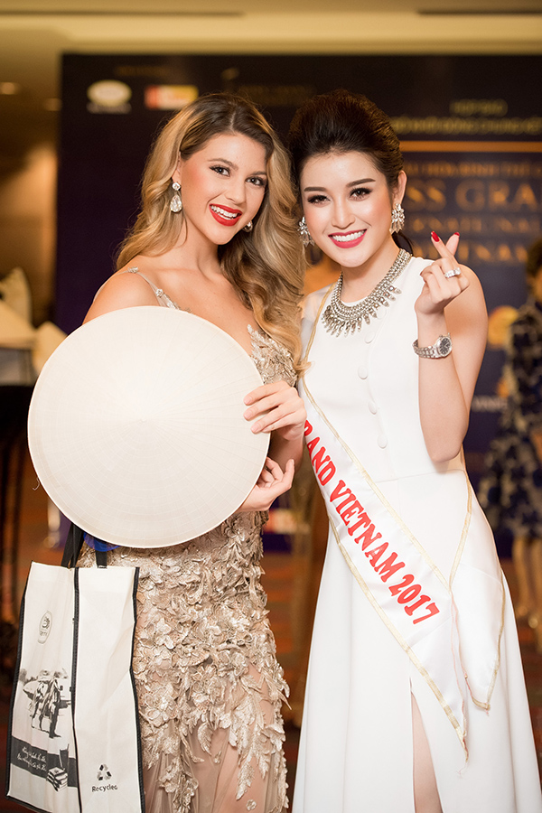 Huyền My thân thiện với Miss Grand International 2016.