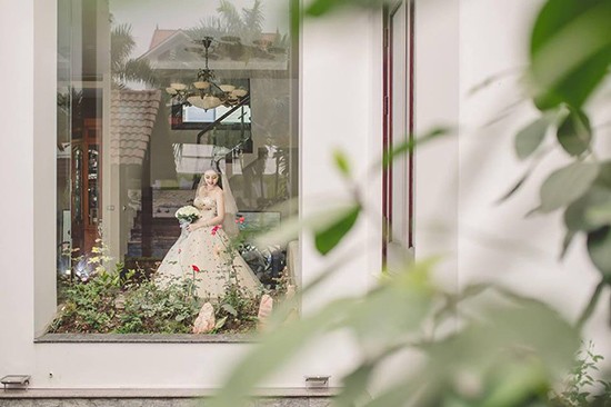 Cô dâu Ngô Trà My xinh đẹp trong bộ váy cưới lộng lẫy. Hôn lễ của Á hậu Trà My vừa tổ chức tại Hải Dương vào ngày 16/3 vừa qua.