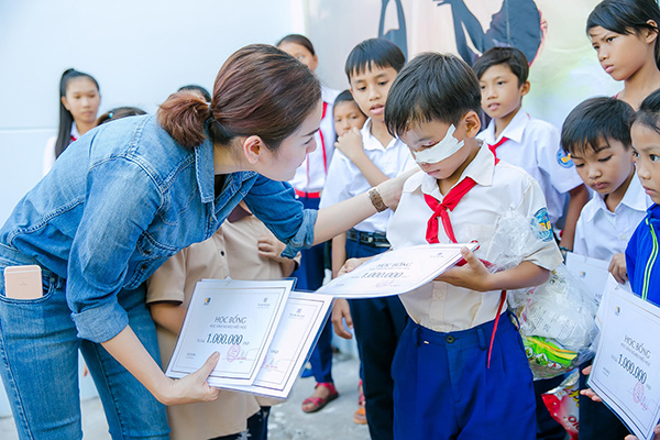 Á hậu Phương Lê trao quà từ thiện cho các em nhỏ ở Phú Quốc.