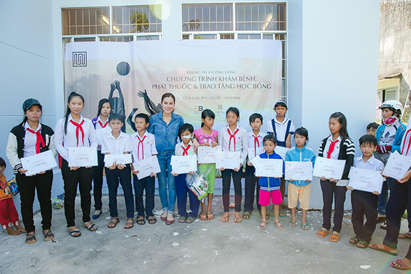 Cô còn đưa đoàn y bác sĩ về Phú Quốc để khám chữa bệnh cho học sinh nghèo.