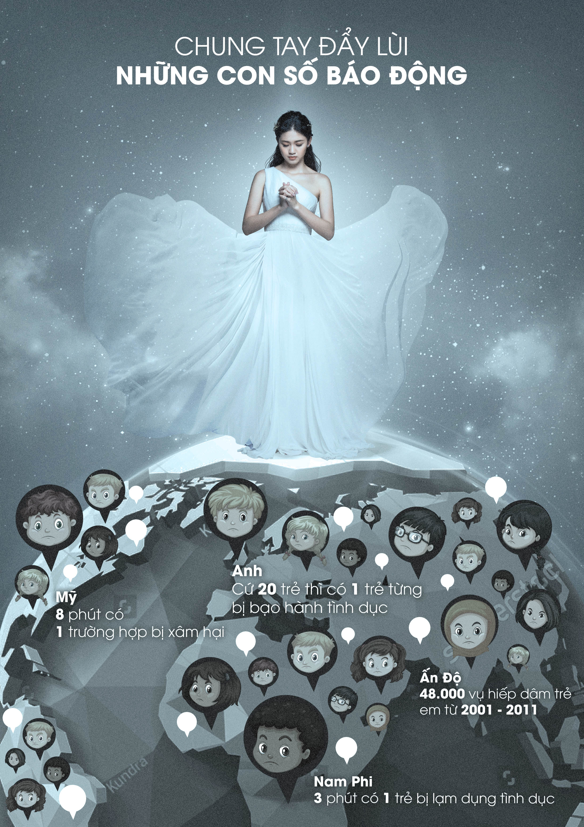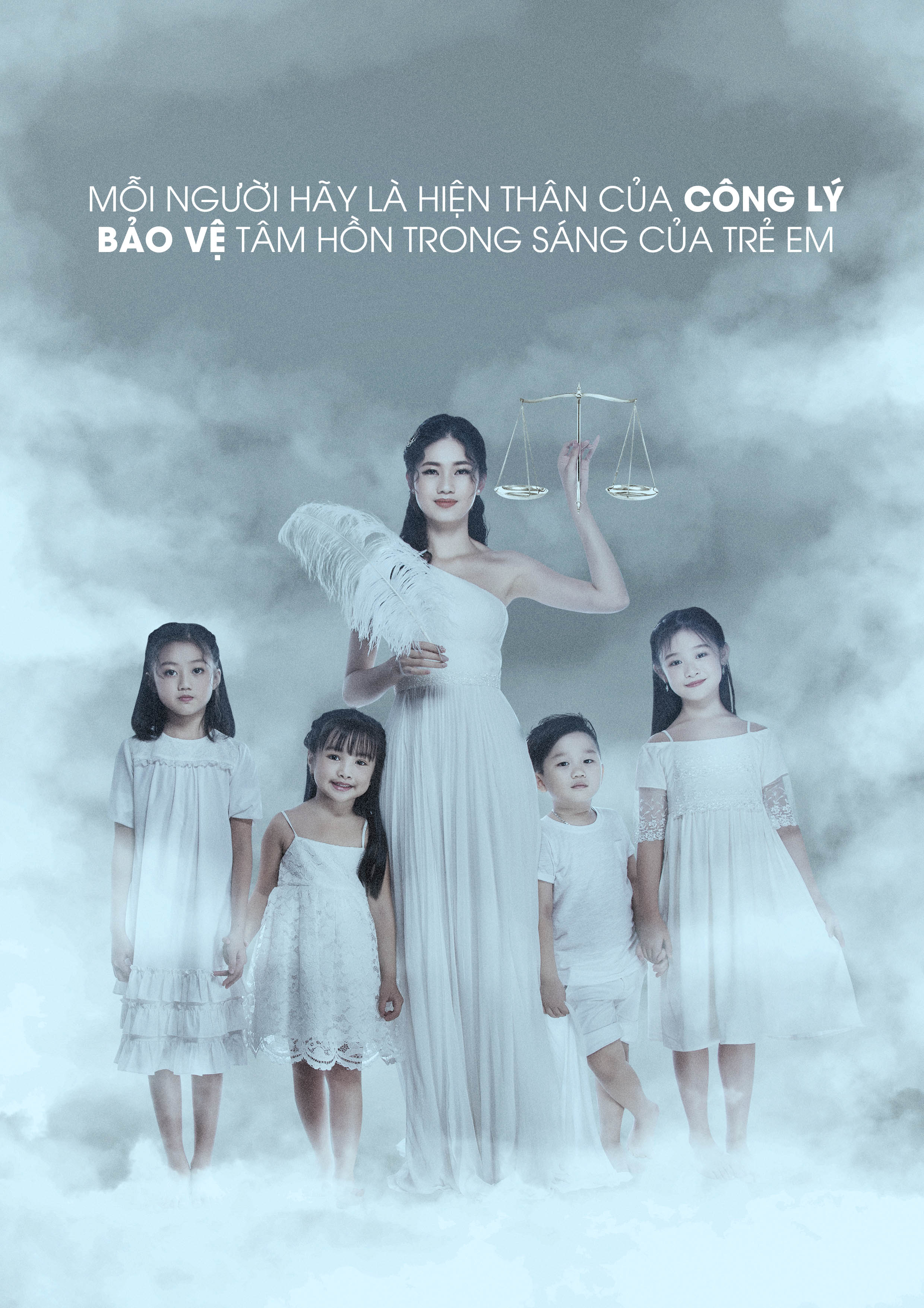Sau quá trình đồng hành cùng Dự án, Á hậu Việt Nam 2016 thực hiện bộ ảnh ý nghĩa kêu gọi sự quan tâm của xã hội đến vấn đề chống xâm hại trẻ em. Trong hình, người đẹp gốc Hà thành hoá thân thành nữ thần công lý, gióng lên hồi chuông cảnh tỉnh trước những con số đáng báo động về thực trạng trẻ em bị xâm hại.