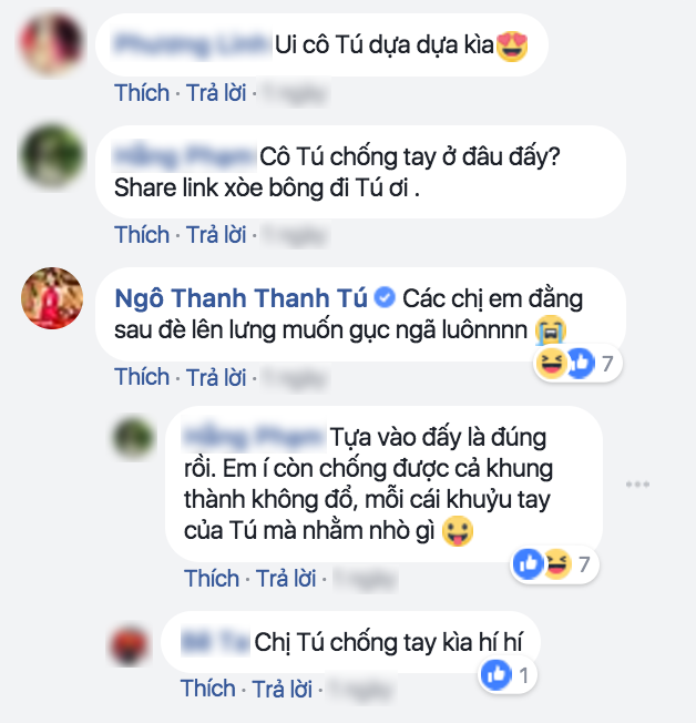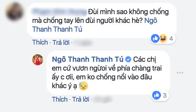 Khi bị cư dân mạng vui vẻ “nhắc nhở”, Thanh Tú giải thích: “Các chị em cứ vươn người về phía chàng trai ấy, em không chống nổi vào đâu khác”.