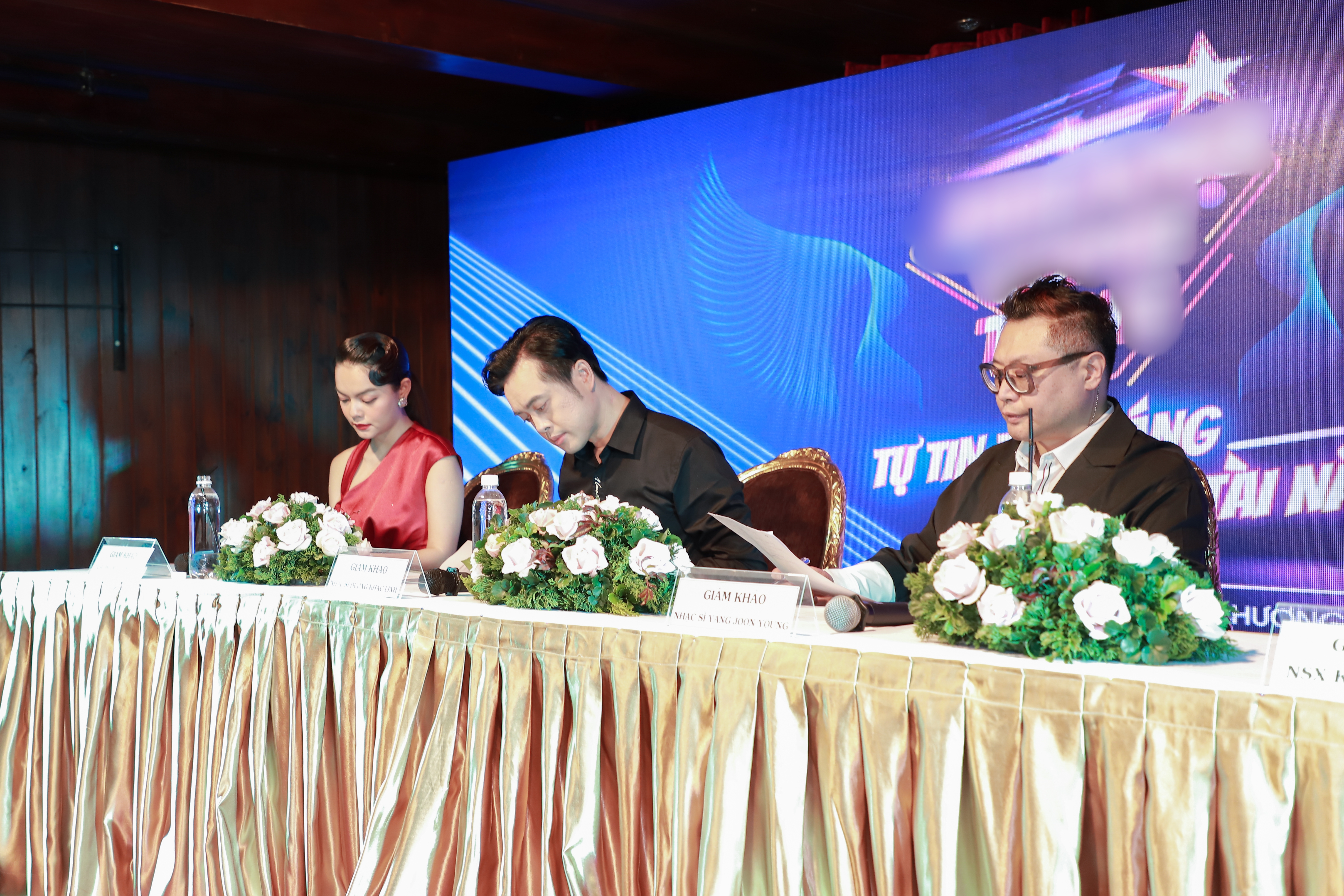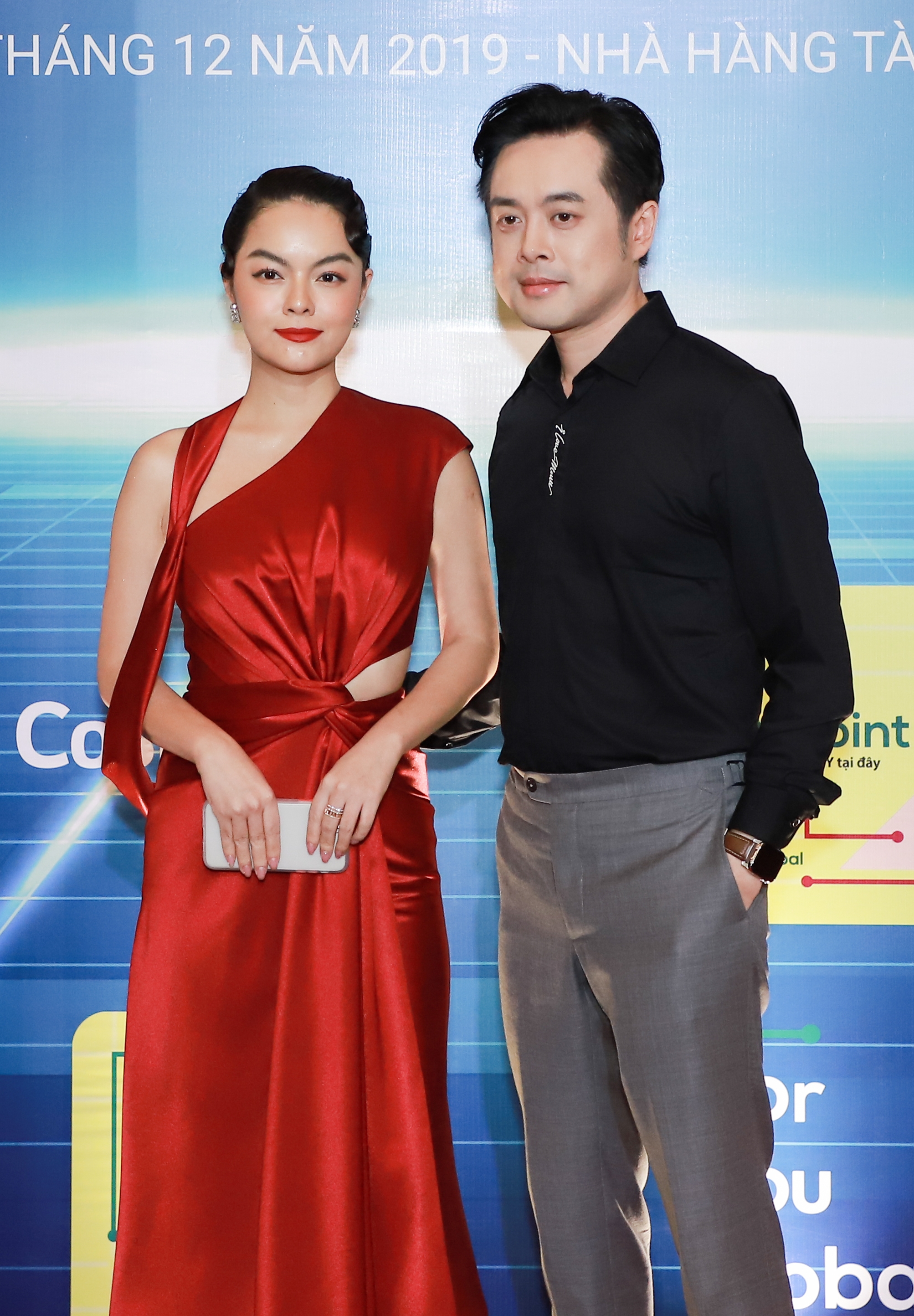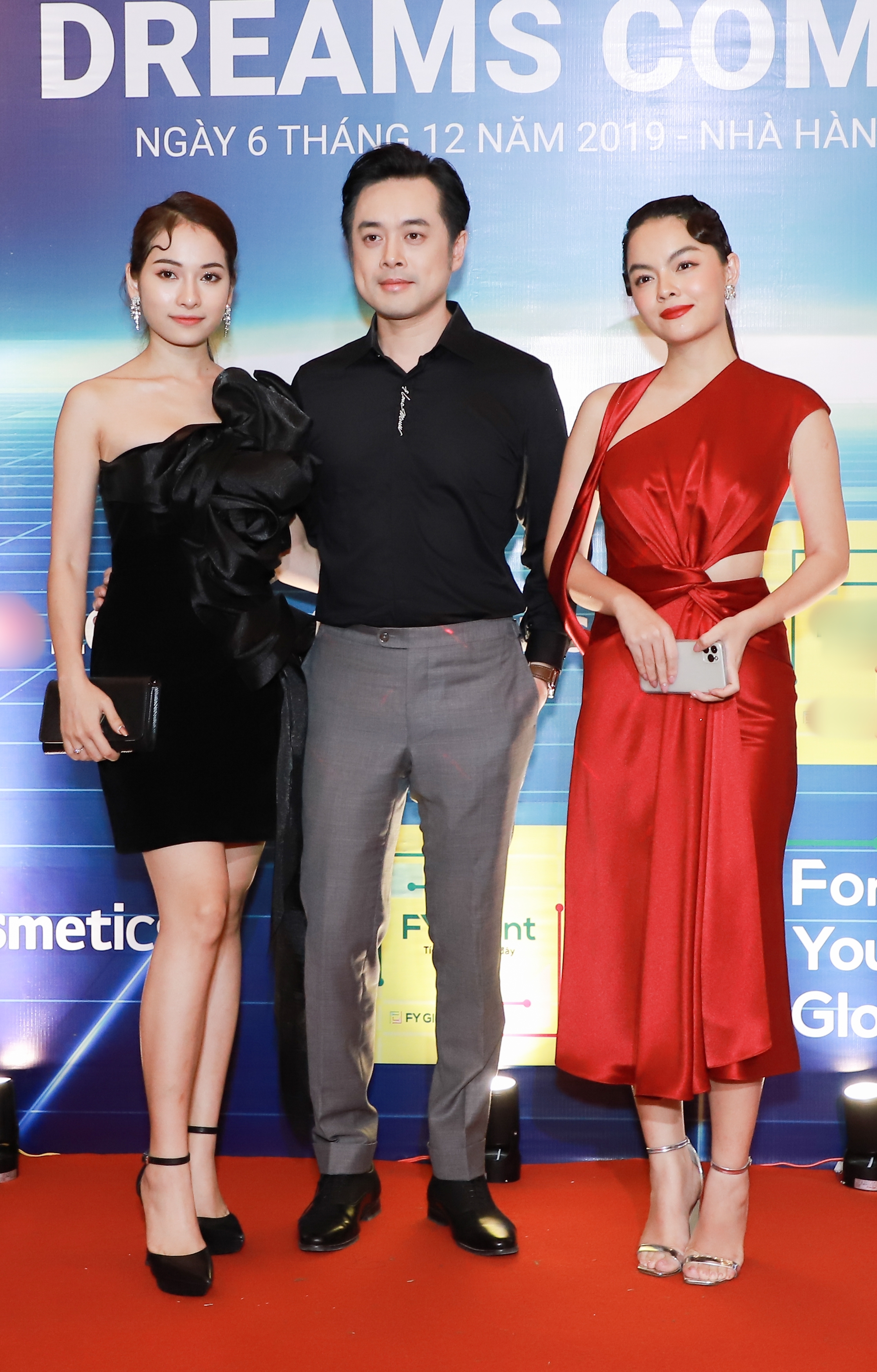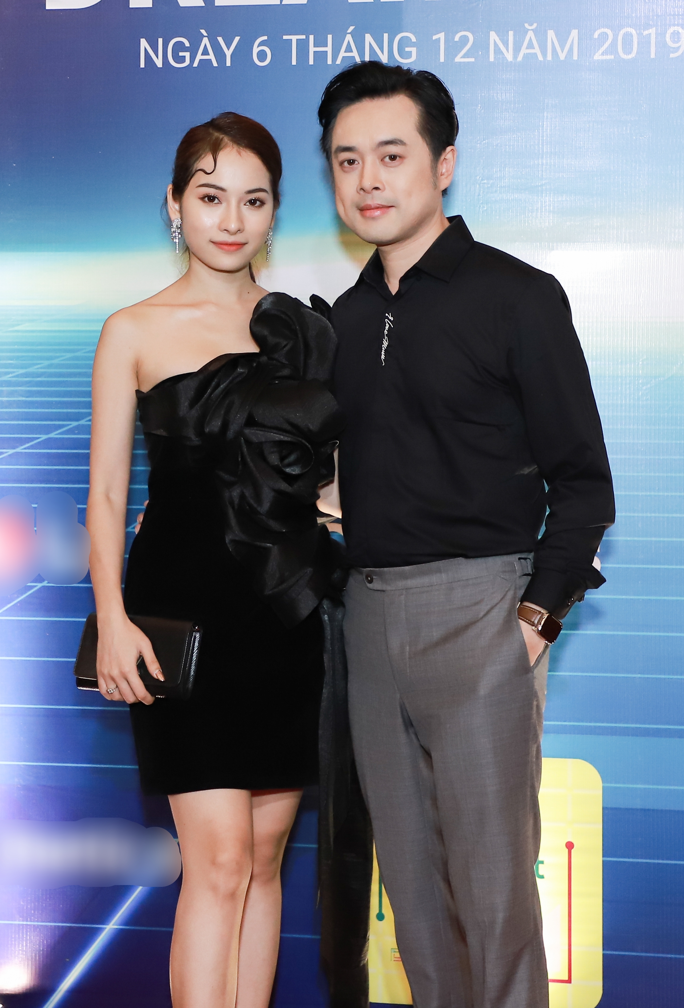 Vợ chồng Dương Khắc Linh diện trang phục ton-sur-ton bên cạnh Phạm Quỳnh Anh nổi bật và xinh đẹp.