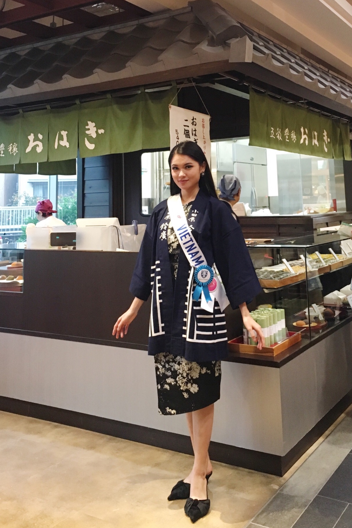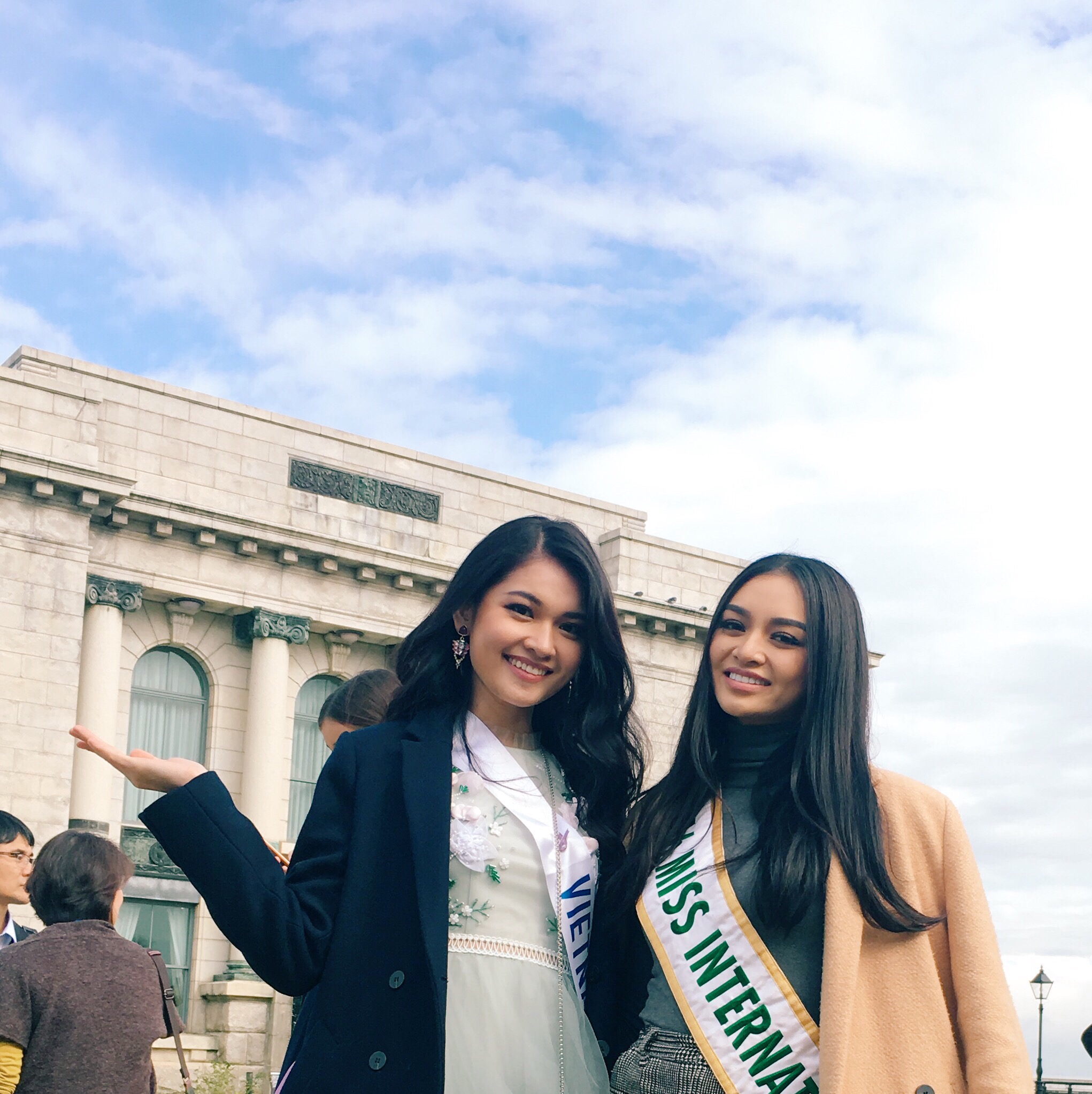 Á hậu Thuỳ Dung đang bước vào tuần hoạt động thứ 2 tại Miss International 2017. Người đẹp và các thí sinh khác được ban tổ chức sắp xếp đưa đi thăm quan nhiều danh lam thắng cảnh, công trình và sự kiện giao lưu văn hoá tại Nhật Bản.