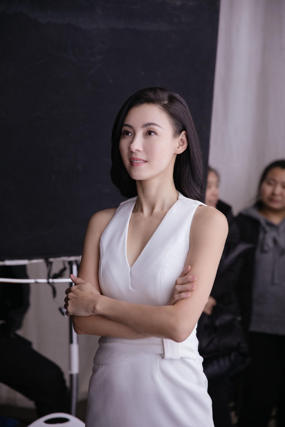 Phòng làm việc đăng tải những hình hậu trường cho thấy hình ảnh Trương Bá Chi trong váy trắng cổ chữ V và tôn lên vòng hai thon gọn. Gương mặt trắng như trứng gà bóc của cô càng làm cho người xung quang ganh tị và thu hút.