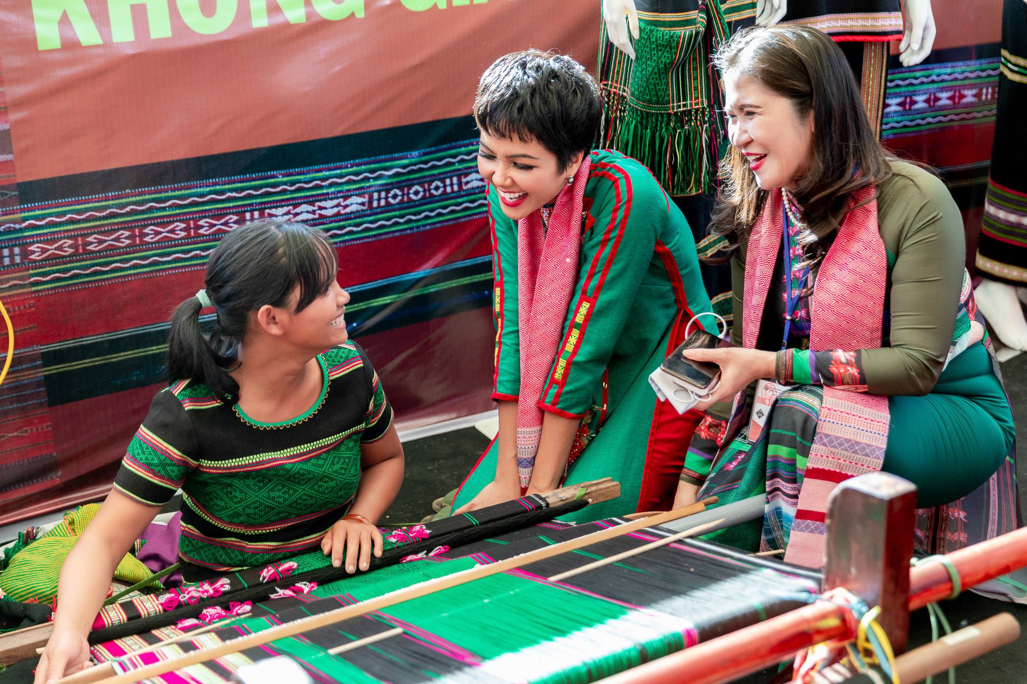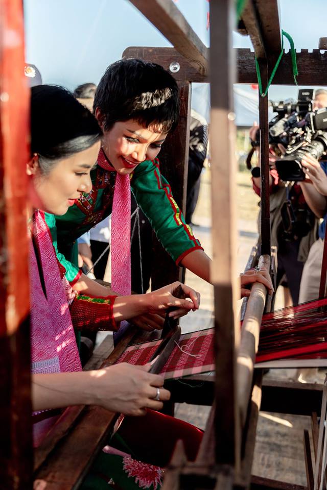 Bên cạnh đó, cô nàng cũng nhắn nhủ những lời động viên rất ấm áp cho những người thợ thủ công làng nghề dệt thổ cẩm ở nước ta: “Hen hi vọng trong thời gian sắp tới, thổ cẩm Việt Nam sẽ ngày càng phát triển hơn nữa, vươn xa cùng bạn bè Thế giới, là một trong những đại diện của nét đẹp văn hóa Việt Nam. Và với Hen, Hen đã rất tự hào khi mặc trên mình những thiết kế thổ cẩm Việt Nam giới thiệu cùng bạn bè Thế giới tại Miss Universe 2018”.
