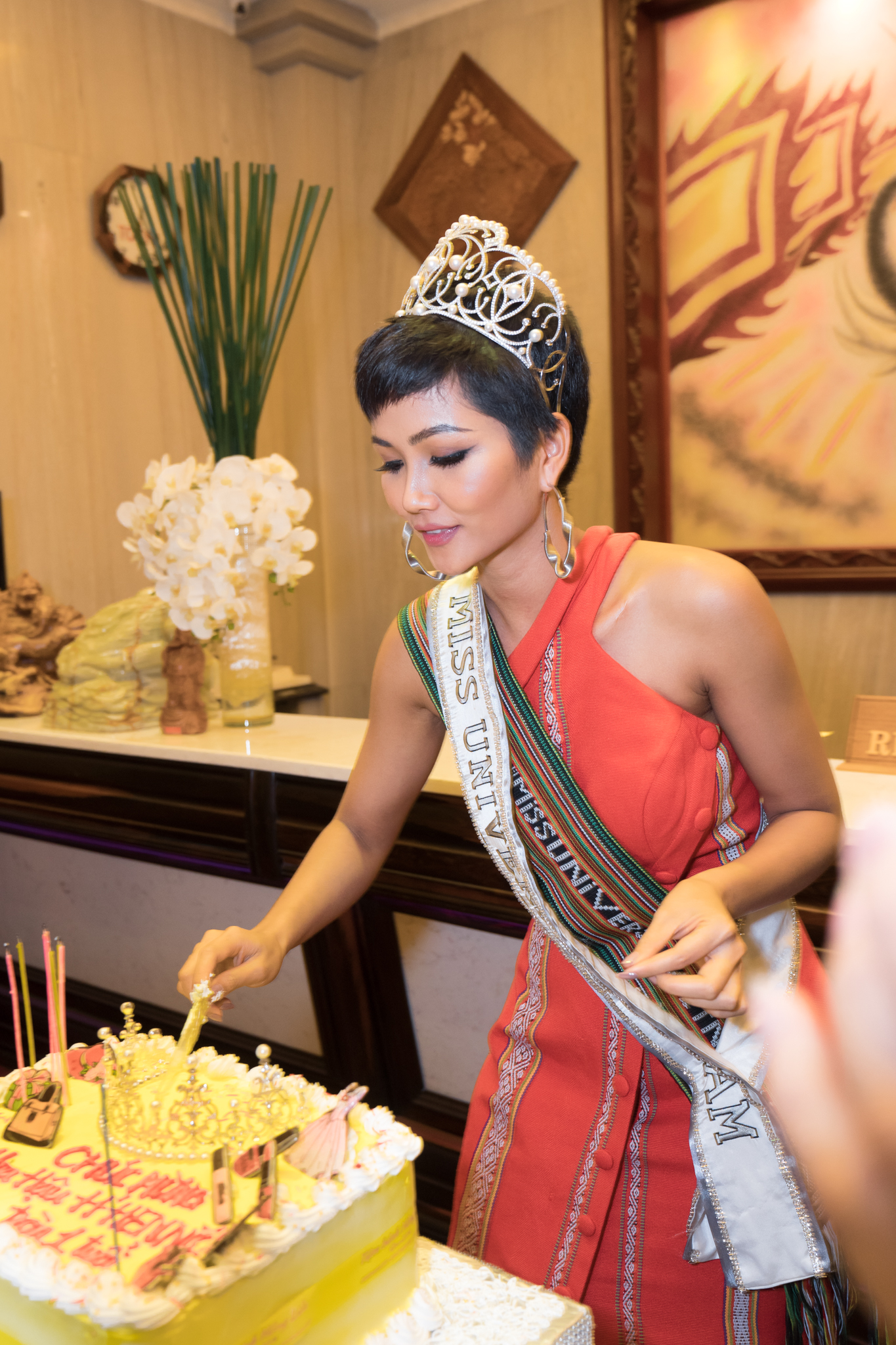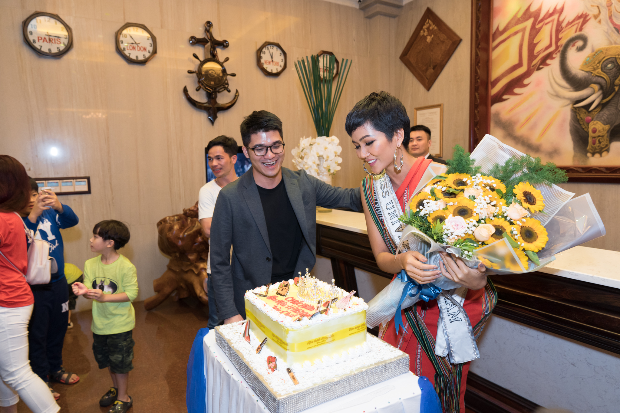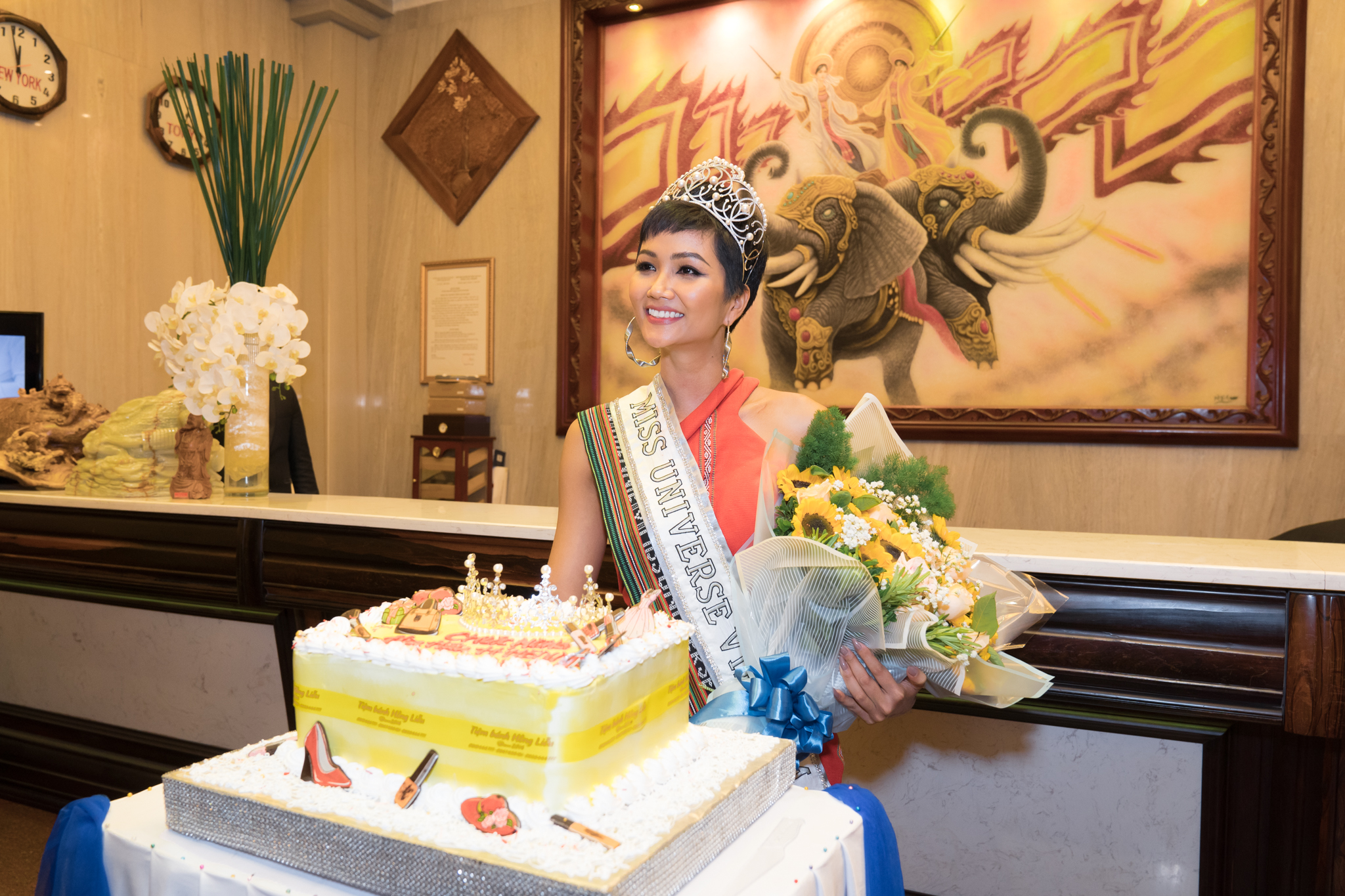 Ngay sau khi di chuyển về khách sạn, H’Hen Niê bất ngờ nhận được món quà đặc biệt từ ekip UNICORP (công ty Hoàn vũ Sài Gòn) đúng khoảnh khắc cách đây một năm trước cô đăng quang Hoa hậu Hoàn vũ Việt Nam. H’Hen Niê không quên gửi lời cảm ơn đến công ty, người thân, bạn bè và toàn bộ khán giả đã luôn yêu thương, dõi theo và đồng hành cùng cô trong chặng đường một năm qua.
