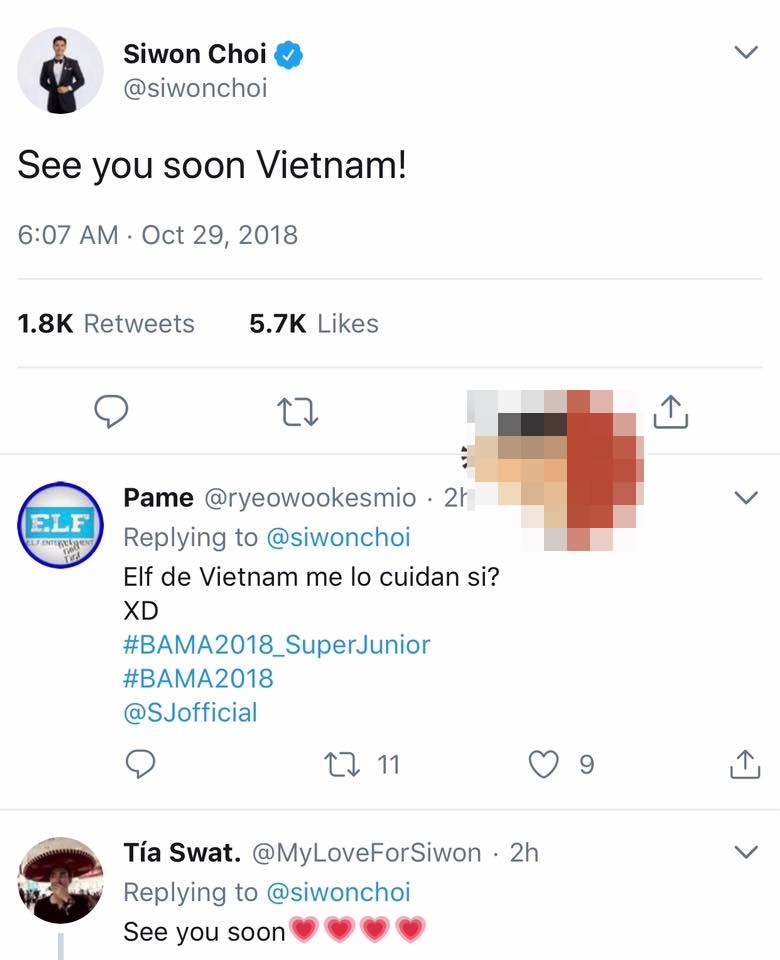 Mới đây, trên trang cá nhân của Choi Siwon - thành viên của Super Junior đã chia sẻ dòng trạng thái “See you soon Vietnam” khiến người hâm mộ thực sự “bấn loạn”. Mặc dù thông tin chưa thực sự rõ ràng, thế nhưng ai nấy đều háo hức khi sắp tới sẽ được gặp lại “nam thần”.