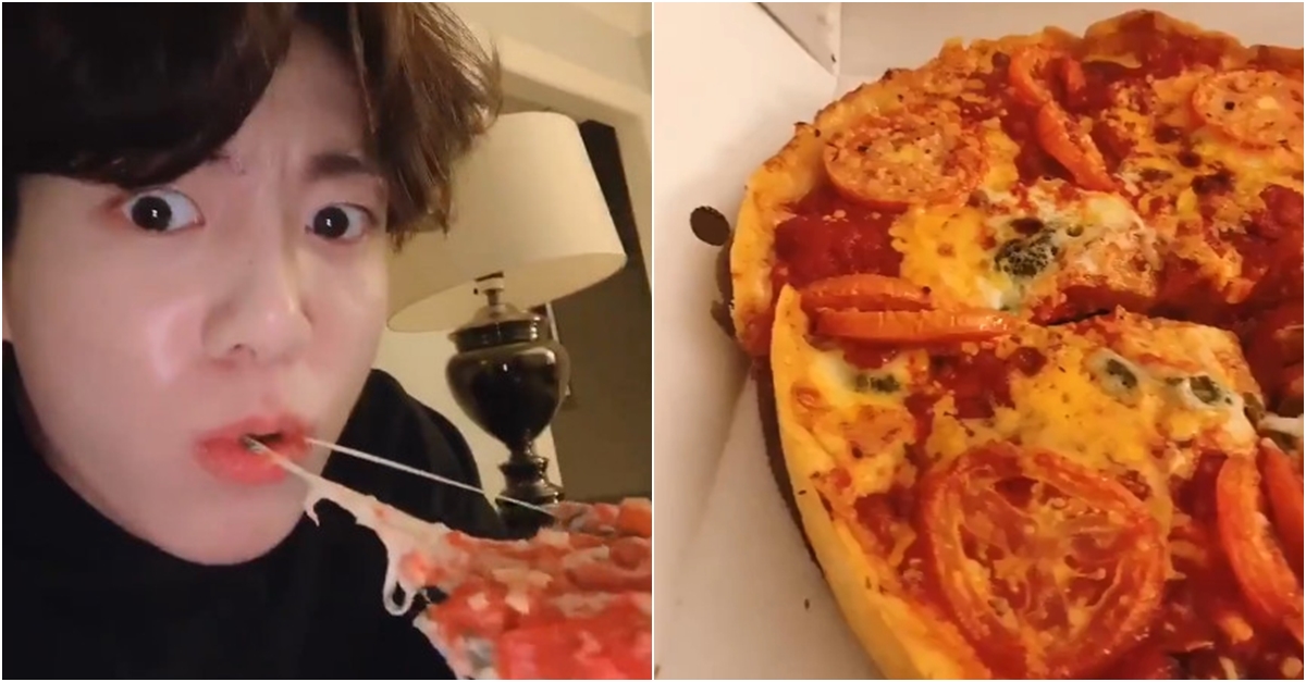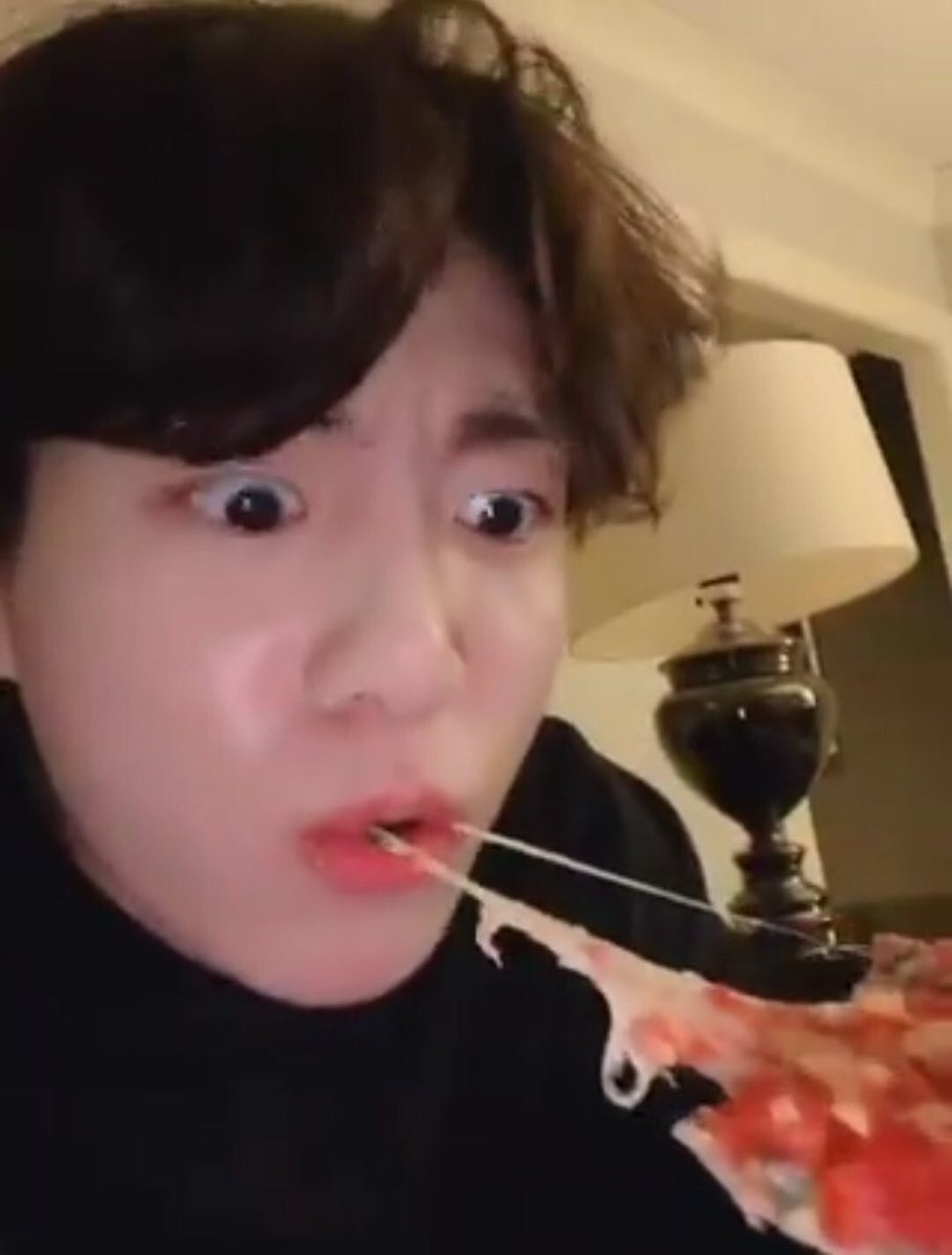 Cận cảnh nam thần Jungkook ăn pizza khiến fan cười ngất ngây.