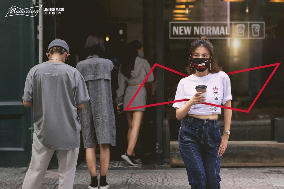 Trong trang phục street style thường ngày, “nàng Mị” vẫn thể hiện được chất riêng trong bộ sưu tập khẩu trang thời thượng phiên bản giới hạn từ “Vua Bia” Budweiser kết hợp với nhãn hiệu thời trang local streetwear HEADLESS.