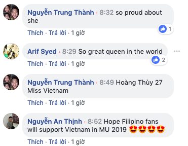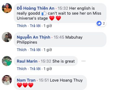 Với sự thông minh và khéo léo, Hoàng Thuỳ khá dễ dàng để vượt qua những câu hỏi của chương trình một cách vô cùng tự tin và hoàn hảo. Buổi phỏng vấn của Thuỳ với INQUIRER.net được livestream trực tiếp trên các trang mạng xã hội và nhận về lượt tương tác khủng với hơn 16 nghìn người xem và hàng trăm lượt chia sẻ đến từ các fan sắc đẹp khắp nơi trên thế giới. Trong đó, có rất nhiều bình luận dành những lời khen có cánh cho đại diện Việt Nam tại Miss Universe 2019.