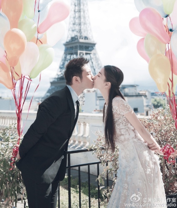 Tháng 5/2015, Angela Baby sang Pháp dự Liên hoan phim Cannes, Huỳnh Hiểu Minh cũng bí mật sang đây. Nhiều trang tin tức lớn nhỏ đồng loạt đưa tin, cặp đôi đã nhân dịp này để chụp ảnh cưới. Ngày 27/5, Huỳnh Hiểu Minh và Angela Baby khoe cặp giấy đăng ký kết hôn trên Weibo và xác nhận chuyện hai người đã trở thành vợ chồng.