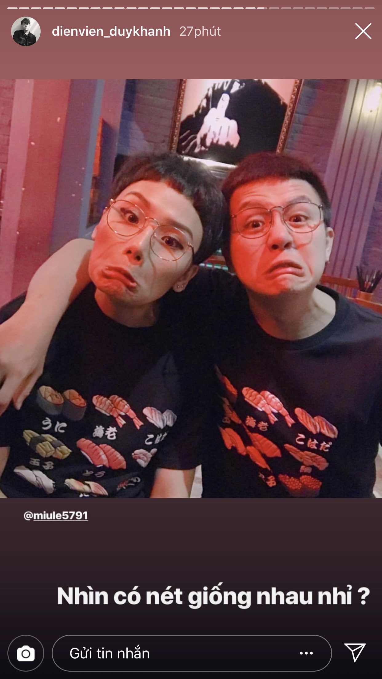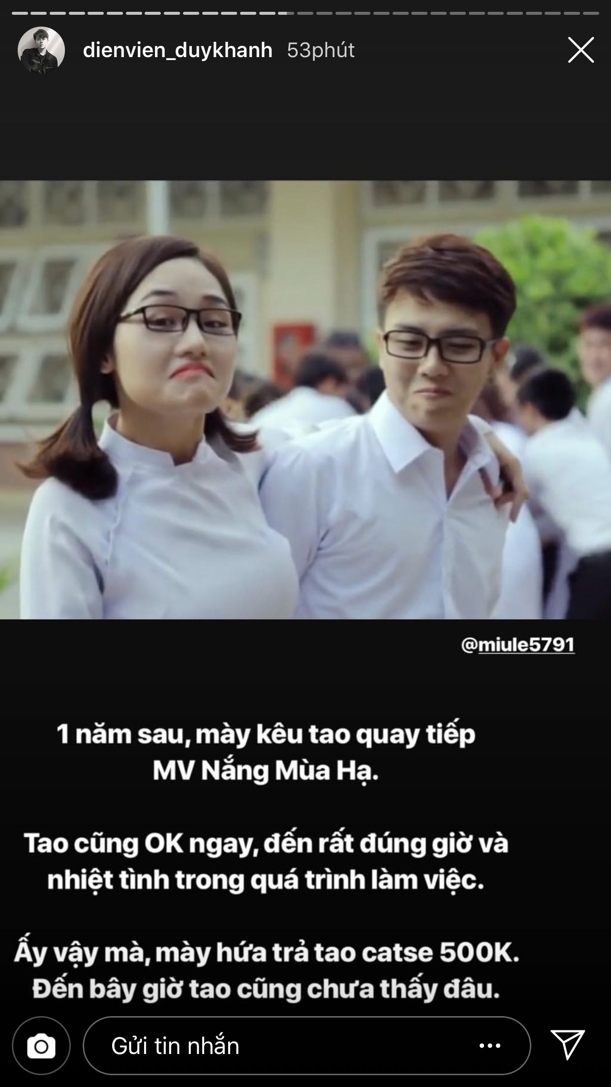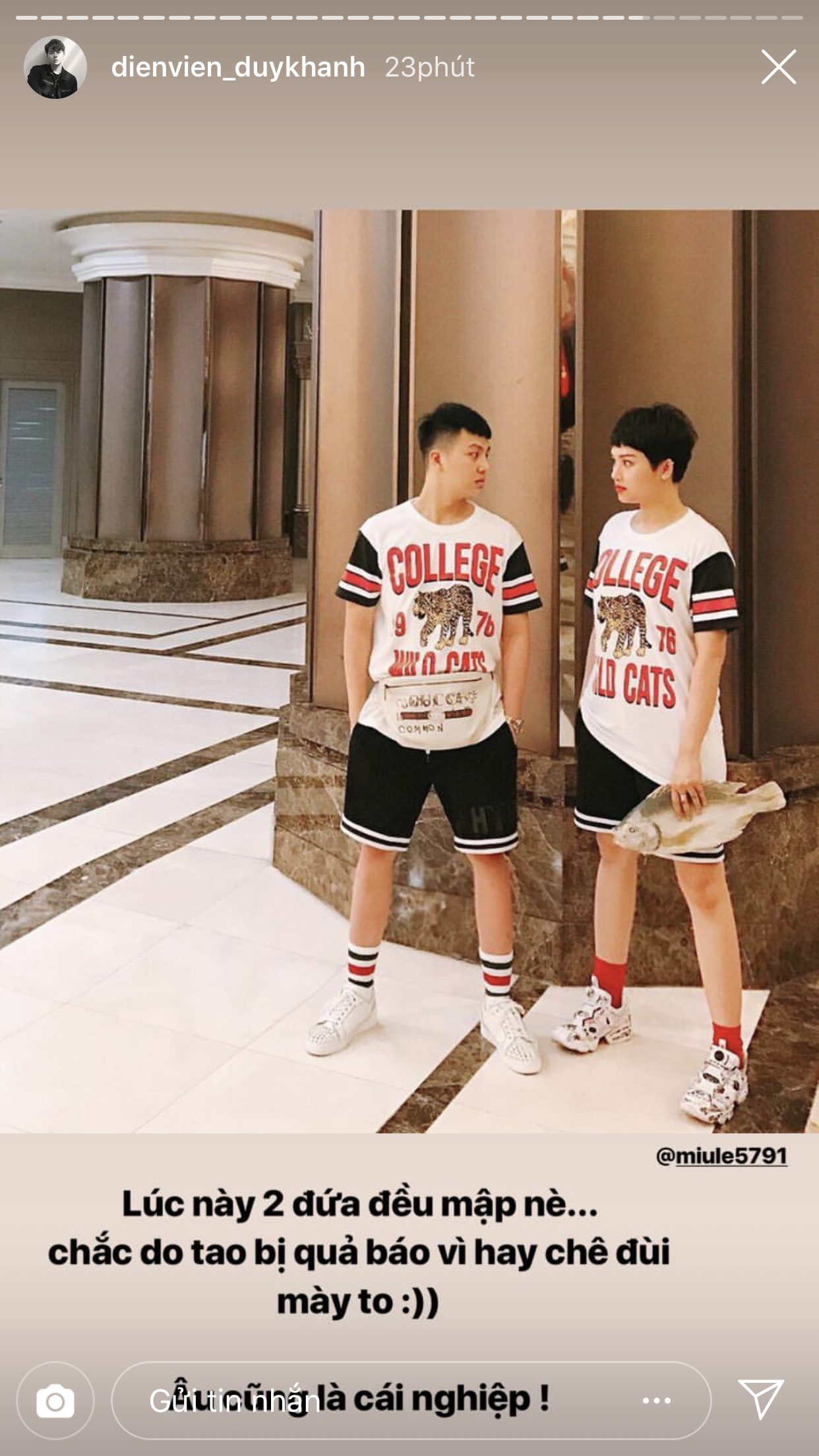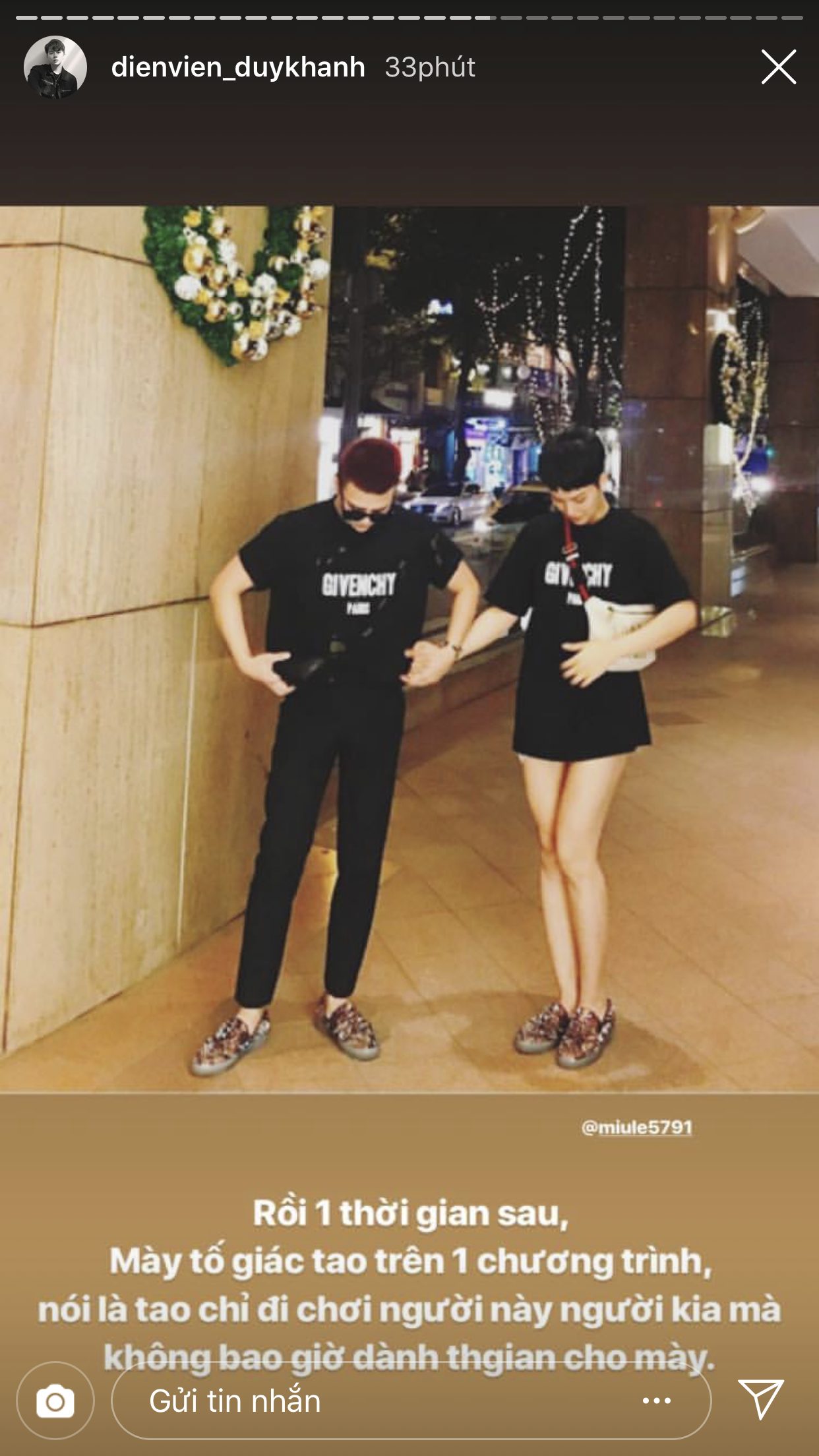 Trước thềm đến ngày tình bạn của cả hai tròn 6 tuổi, Duy Khánh đã đăng rất nhiều story để chia sẻ lại những câu chuyện từ thuở mới bắt đầu quen biết nhau và cũng nhờ vậy mà khán giả mới có cơ hội được biết thêm về độ sâu sắc của tình cảm giữa hai người. Duy Khánh chia sẻ, lúc mới bắt đầu làm bạn, anh chàng chỉ mới là diễn viên ở một sân khấu kịch, còn Miu Lê lúc này đã là một ca sĩ nổi tiếng. Dù vậy, cô nàng vẫn đến xem và ủng hộ cho “thằng bạn” của mình. Điều này đã khiến cho Duy Khánh xúc động và cảm thấy tự hào vì có được một người bạn như Miu Lê.