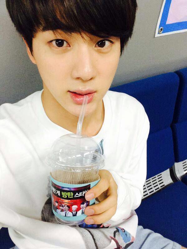 Dù không make up nhưng những đường nét trên gương mặt anh vẫn nổi bật được vẻ đẹp trai thường thấy của Jin