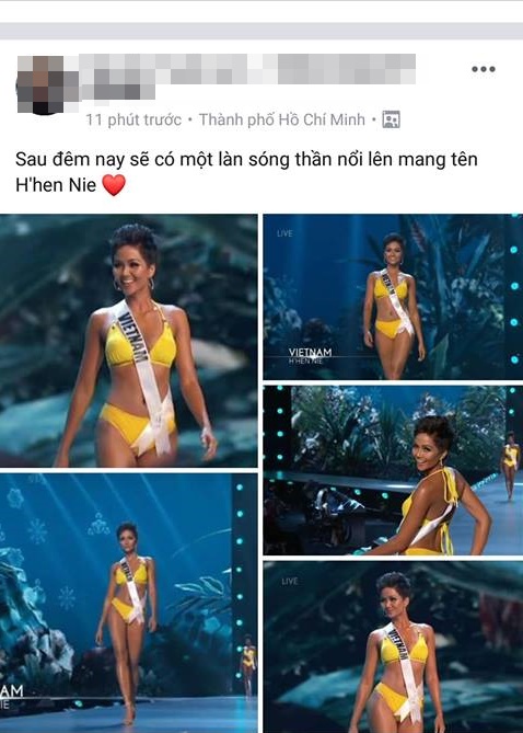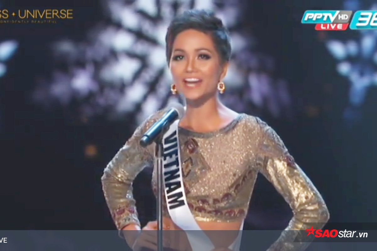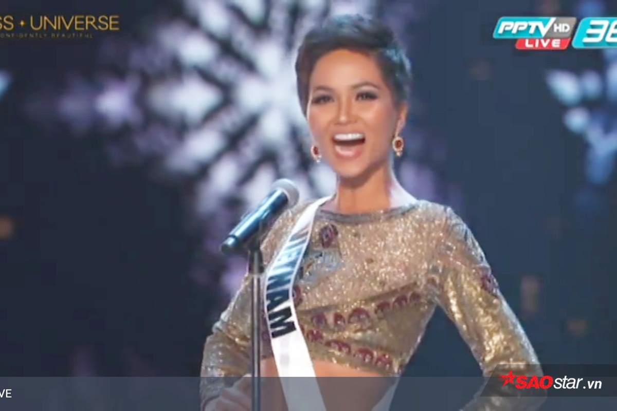 Khán giả đã reo hò khi đại diện Việt Nam xuất hiện trên sân khấu. Và người hâm mộ dành 1 từ “Xuất sắc” dành cho H’Hen Niê. Nụ cười tỏa sáng đúng lúc. Vẻ mặt lạnh lùng như trở thành tâm điểm của cả sân khấu.