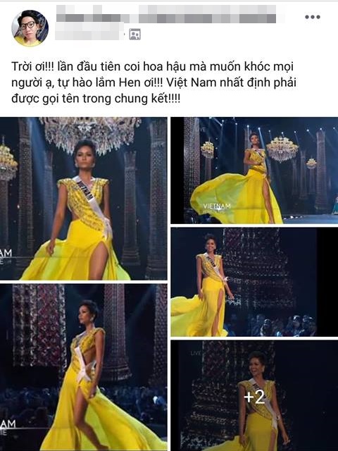 Không những thế, hai tiếng Việt Nam hô vang đã khiến ai nấy đều vô cùng vui mừng. Có một thời điểm, H’Hen Niê xúc động và sắp bật khóc. Thế nhưng khóc cho niềm vui khi được hô vang 2 tiếng Việt Nam trên đấu trường quốc tế là điều may mắn.