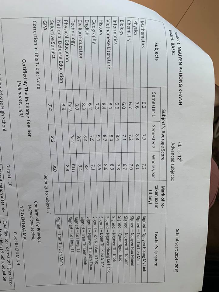 Phương Khánh chia sẻ “Đang dọn phòng tự nhiên tìm được học bạ cấp 3. Nhớ hồi đó lớp 12 khó, mà thực ra cả 3 năm cấp 3 chỉ toàn học với học thêm. Sáng 7 giờ vào lớp học đến 5 giờ chiều. Sau đó về nhà 6:30 học đến tối. Nhưng cũng đã cố gắng, đôi khi cũng lười lắm chứ nhưng cứ nghĩ là “mình không cố gắng thì không ai cố gắng giúp mình”.