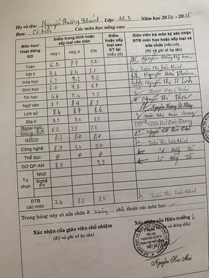 Mới đây trên trang cá nhân của mình, Phương Khánh khiến nhiều người thán phục khi chia sẻ bảng điểm lớp 12 trên trang cá nhân. Với điểm số các môn đồng đều, Phương Khánh đã “gia nhập” hội những sao Việt học giỏi.