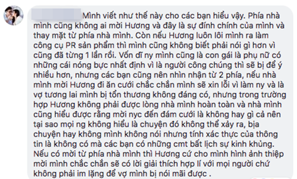 Dòng trạng thái thu hút nhiều sự quan tâm của công chúng. Về phía Midu, nhiều thông tin đồn đoán về bạn trai mới gây chú ý trong dư luận nhưng cô vẫn chưa lên tiếng xác nhận kể từ sau chia tay Phan Thành.