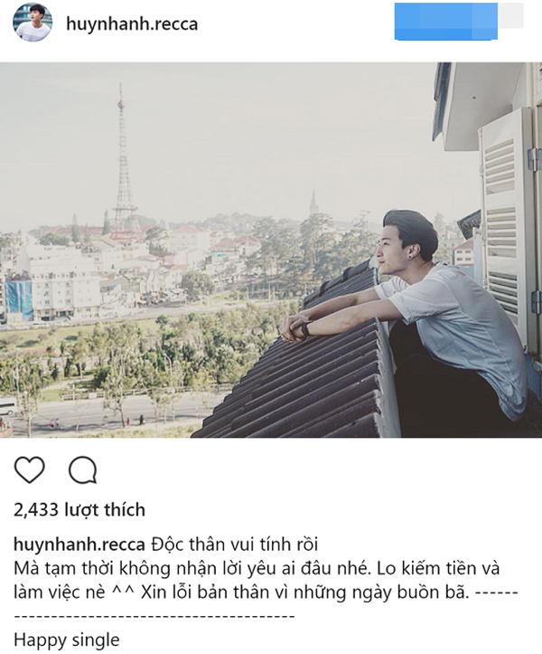 Thông tin cả hai “đường ai nấy đi” bắt nguồn từ việc Huỳnh Anh đăng trên Instagram thông báo bản thân “độc thân vui tính”. Anh lên tiếng xin lỗi bản thân vì thời gian dài vừa qua đã buồn bã. Sau khi đăng tải, bức ảnh nhận về nhiều sự quan tâm từ công chúng, mọi người xôn xao về thực hư câu chuyện và bày tỏ sự nuối tiếc.