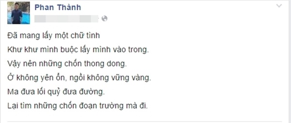 Phan Thành nhắn gửi nỗi lòng đến Midu.