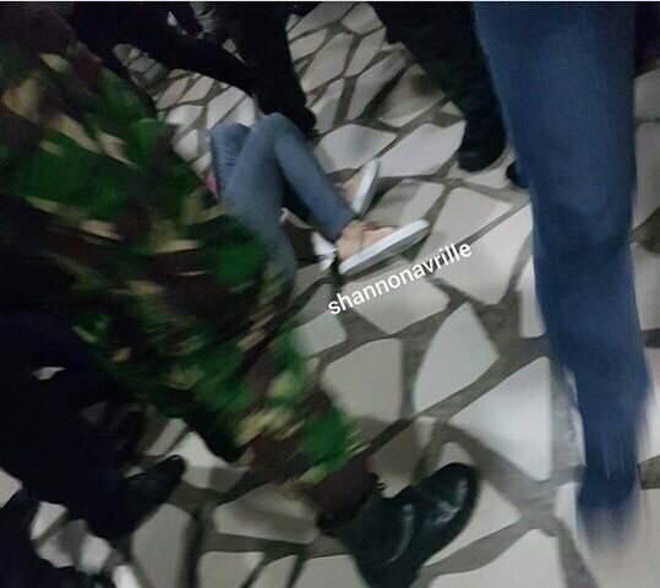 Hình ảnh Taeyeon gục ngã tại sân bay, cảnh vệ phải nhấc bổng lên mới có thể đưa cô thoát ra khỏi đám đông hỗn loạn.