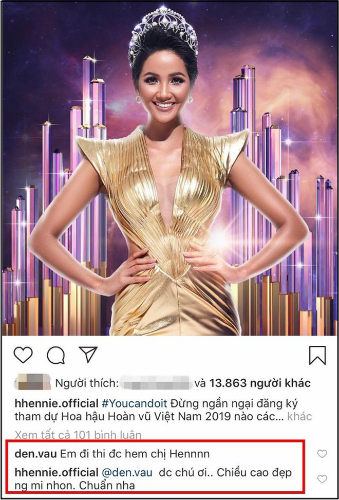 Thời gian vừa qua, tin đồn H’Hen Niê và Đen Vâu hẹn hò đang nhận được nhiều sự quan tâm từ phía người hâm mộ. Những lần comment trên trang cá nhân của cả 2 khiến fan hâm mộ nhanh chóng “đẩy thuyền” và mong rằng cả hai sẽ trở thành một cặp.