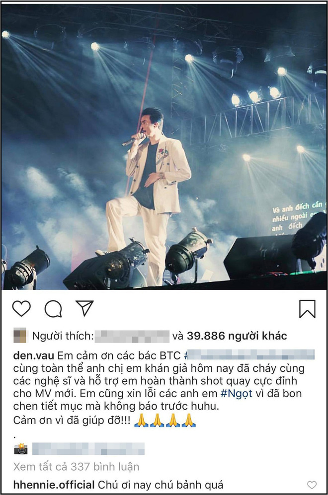 Trước đó, H’Hen Niê bị người hâm mộ bắt gặp bịt khẩu trang kín mít đến ủng hộ Đen Vâu trong một sự kiện âm nhạc. Không những thế, cả hai còn khá thoải mái chụp hình chung với nhau. Nếu như theo dõi trên trang cá nhân của cặp đôi, khán giả có thể thấy rằng cả hai thường xuyên “thả thính” qua lại.