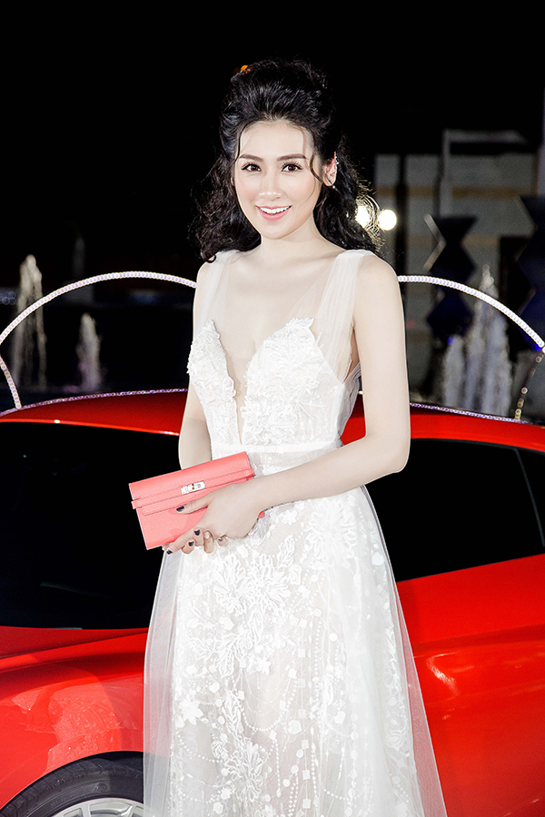 Với làn da trắng ngọt ngào đáng mơ ước, Tú Anh diện trang phục trắng muốt, tôn lên vóc dáng và các số đo ba vòng chuẩn.