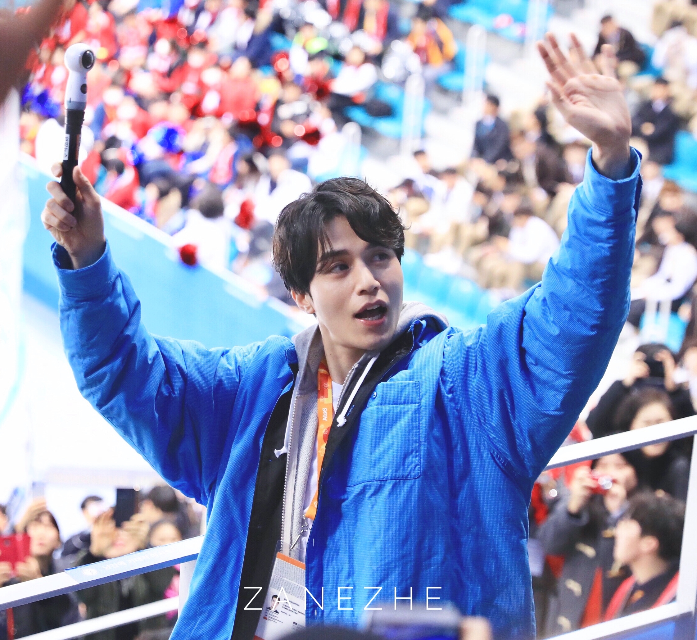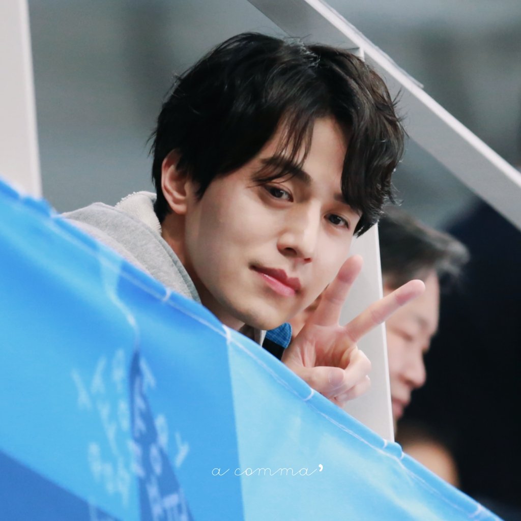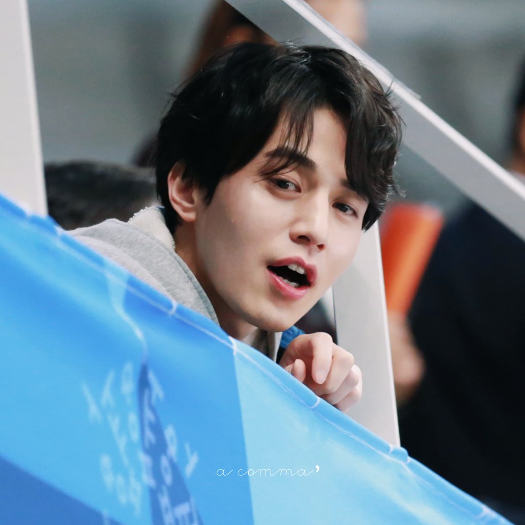 Lee Dong Wook điển trai trên hàng ghế cổ vũ tại Thế vận hội mùa đông.
