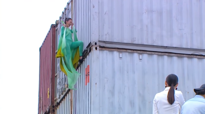 Trailer tập 11 The Face Thailand lại tiếp tục khiến người xem sửng sốt với những màn bay lượn trên không sau màn catwalk dưới nước ở tập 10. Có vẻ ở thử thách này, Top 8 sẽ sử dụng dây cáp leo lên mặt bên của một container và tạo dáng với một sản phẩm nước uống giữa không trung. Fah, Tia tỏ ra rất sợ hãi khi leo lên độ cao chót vót. Julie thì suýt trượt chân khiến HLV Cris phải hét lên vì thót tim.