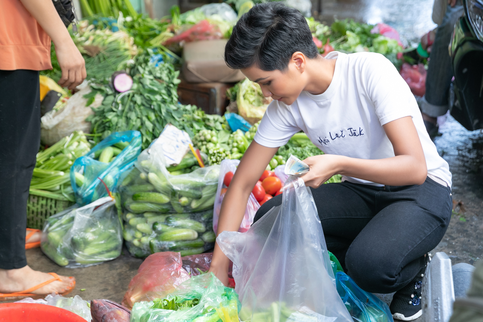 Hoa hậu H’Hen Niê chia sẻ dù đã là Hoa hậu nhưng cô vẫn giữ thói quen tự đi chợ để lựa chọn thực phẩm tươi, sạch. Nàng Hậu bật mí chợ Rạch Ông (Quận 8) là địa điểm quen thuộc của mình khi còn là sinh viên, cũng như khi đi làm người mẫu. Chính vì vậy, nhiều tiểu thương ở chợ đã nhận ra ngay “khách hàng ruột” khi nàng Hậu vừa bước vào chợ. Có người còn chọc “sao không cho chị làm vốn” sau khi nghe cô nói đem hết tiền thưởng đi làm từ thiện. H’Hen Niê hồn nhiên khoe “hồi xưa hay mua khoai lang chỗ chị, mỗi lần mua là 3 ký, 5 ký nhưng hồi đó làm người mẫu, sợ tăng cân nên em ăn khoai lang, giờ em cần mập nên em mua đậu bắp”.