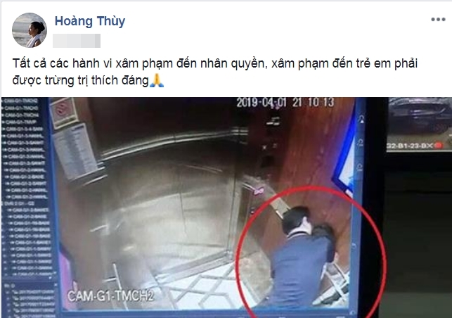 Đang có chuyến đi tại Anh quốc nhưng á hậu Hoàng Thùy vẫn dành thời gian cập nhật tin tức và cùng với các fan bày tỏ ý kiến về vụ việc bé gái được cho là bị lạm dụng trong thang máy. Người đẹp gốc Thanh Hóa đặc biệt bức xúc khi trẻ em, nhất là các bé gái bị xâm phạm. “Tất cả các hành vi xâm phạm đến nhân quyền, xâm phạm đến trẻ em phải được trừng trị thích đáng” - Hoàng Thùy viết.