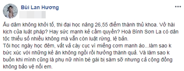 Dòng trạng thái bức xúc của ca sĩ Bùi Lan Hương.